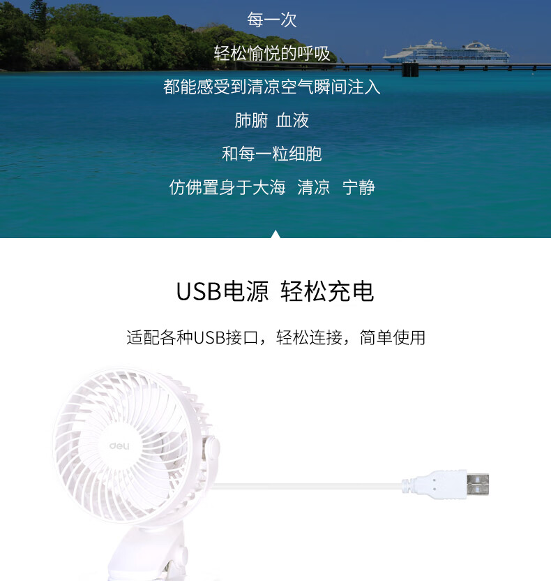 得力/deli 4983460 风扇 USB桌面风扇迷你轻音小电扇 黑色