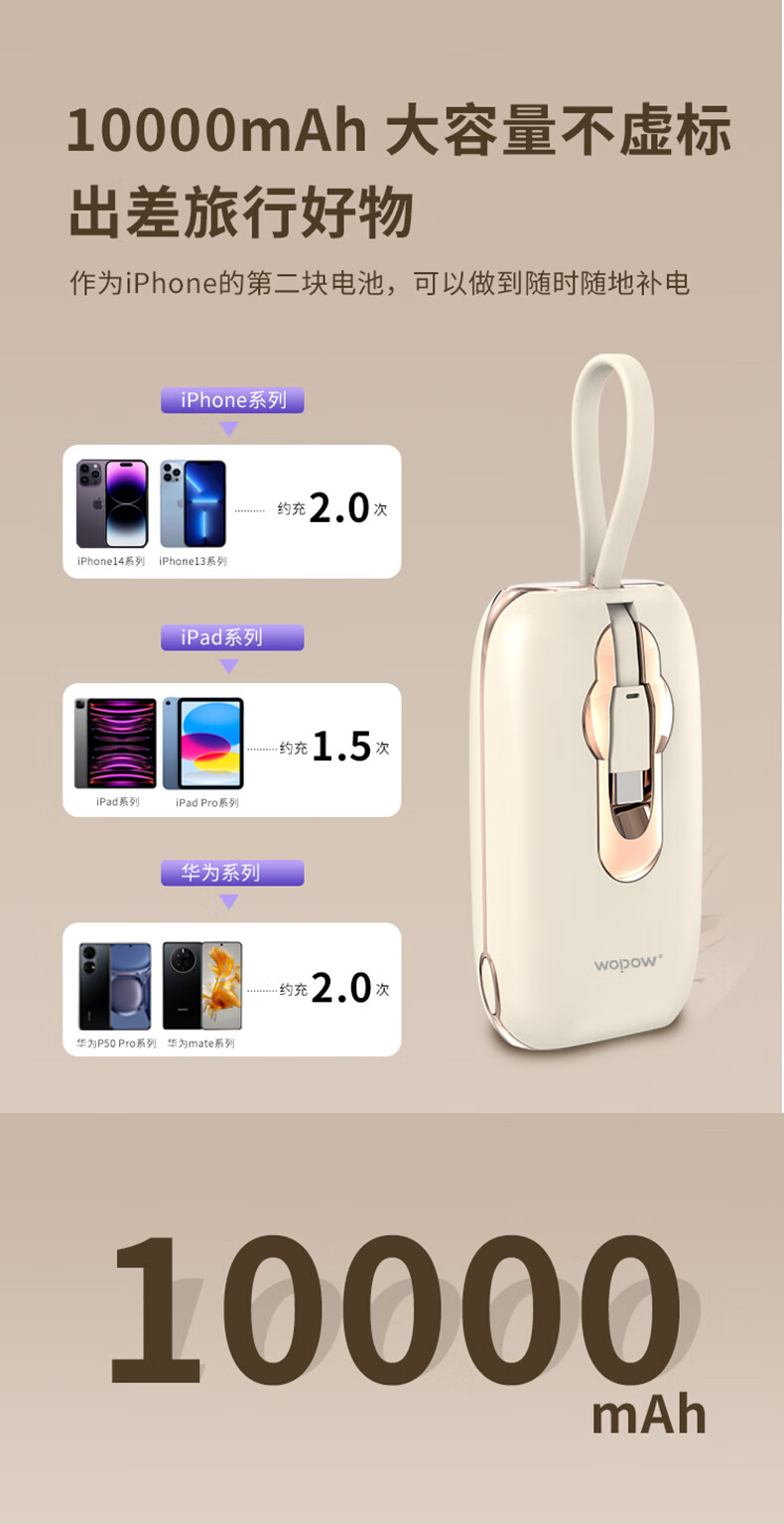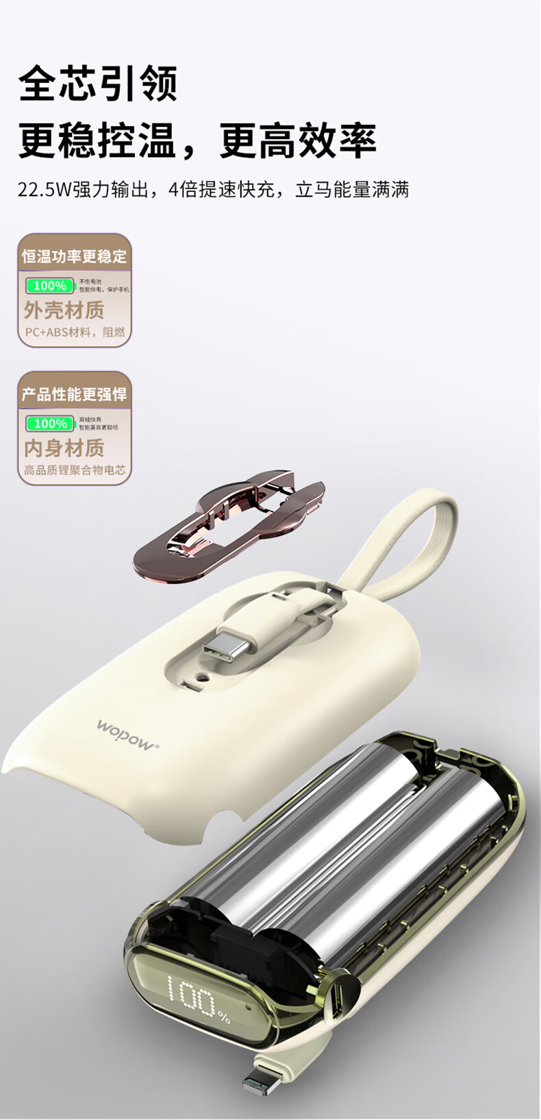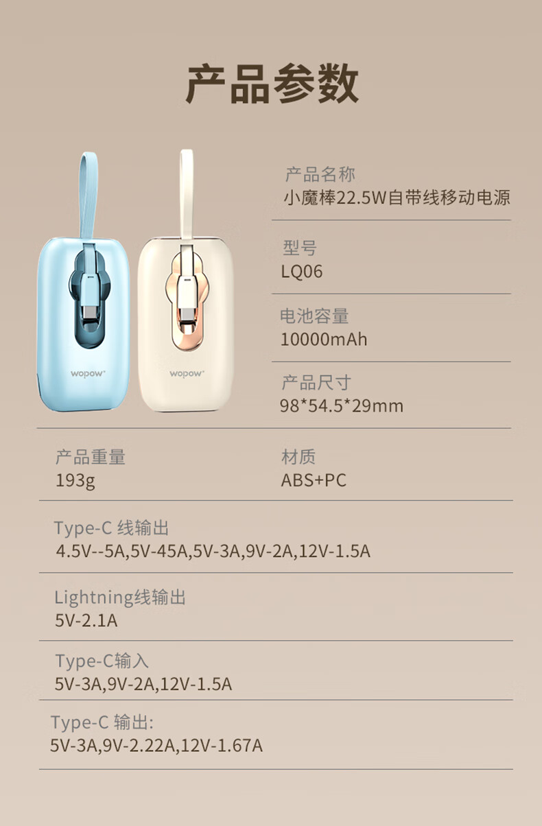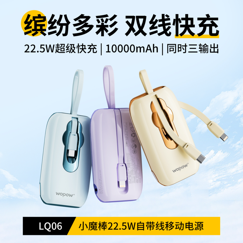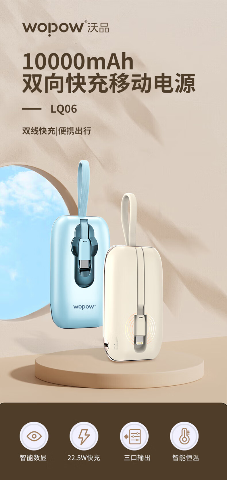 沃品/WOPOW LQ06 手机充电器 双向快充充电宝自带双线小巧便携可上飞机移动电源LQ06 浅蓝色