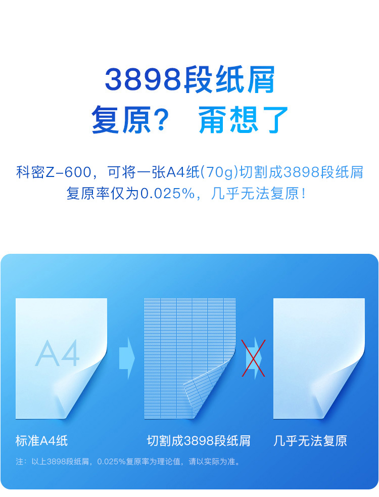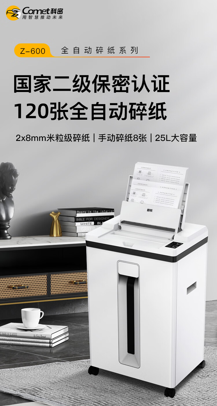 科密/Comet Z-600 碎纸机 国家二级保密认证碎纸机 办公商用大型粉碎机(全自动120张 持续30分钟25L )