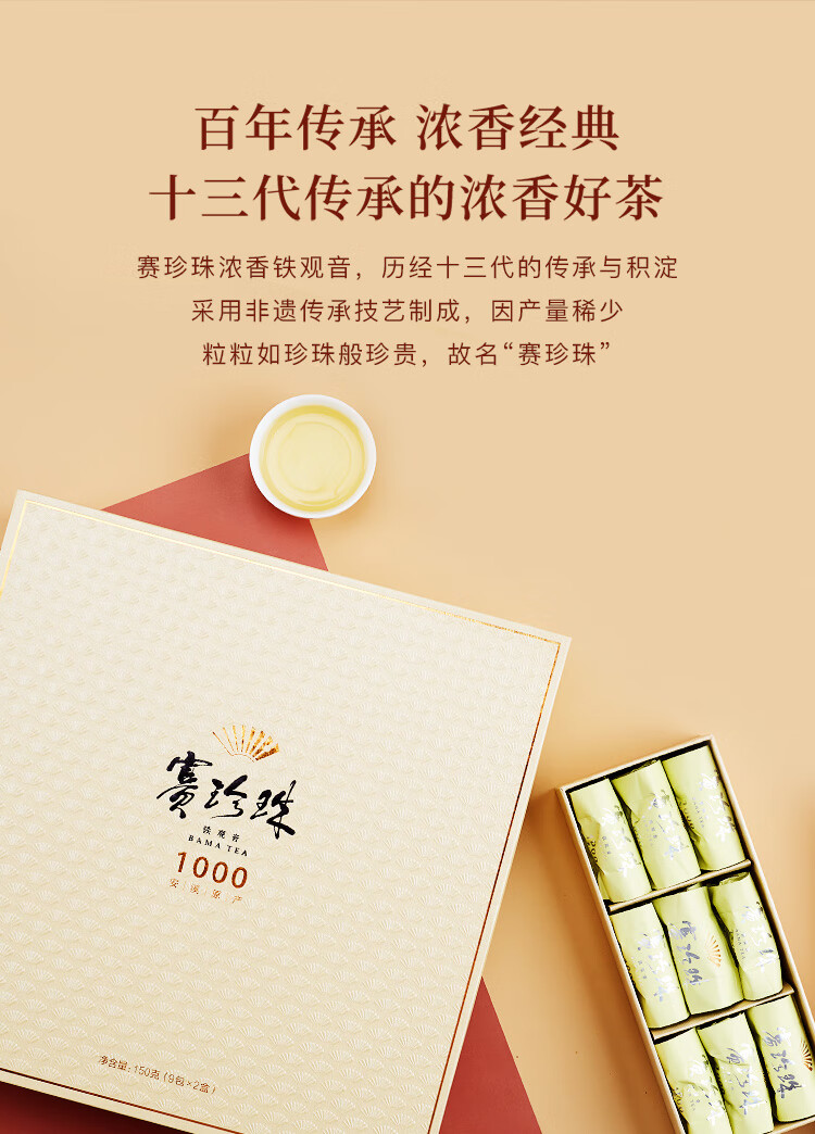 八马/BAMA AA2153 乌龙茶 乌龙茶赛珍珠1000安溪铁观音浓香型特级150g中火礼盒装茶叶