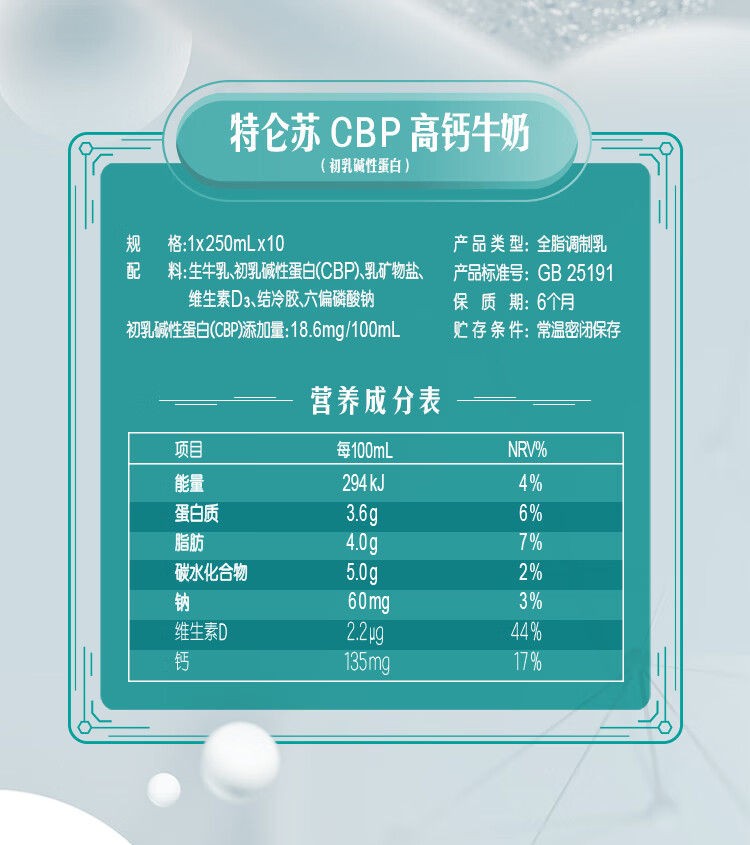 特仑苏 250 牛奶 CBP高钙牛奶利乐梦幻盖250mL×10瓶 集采发货