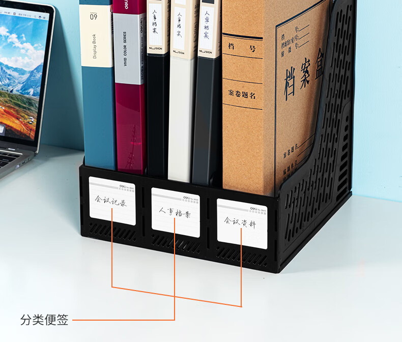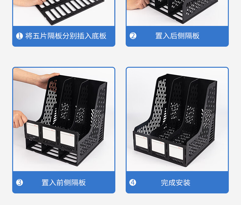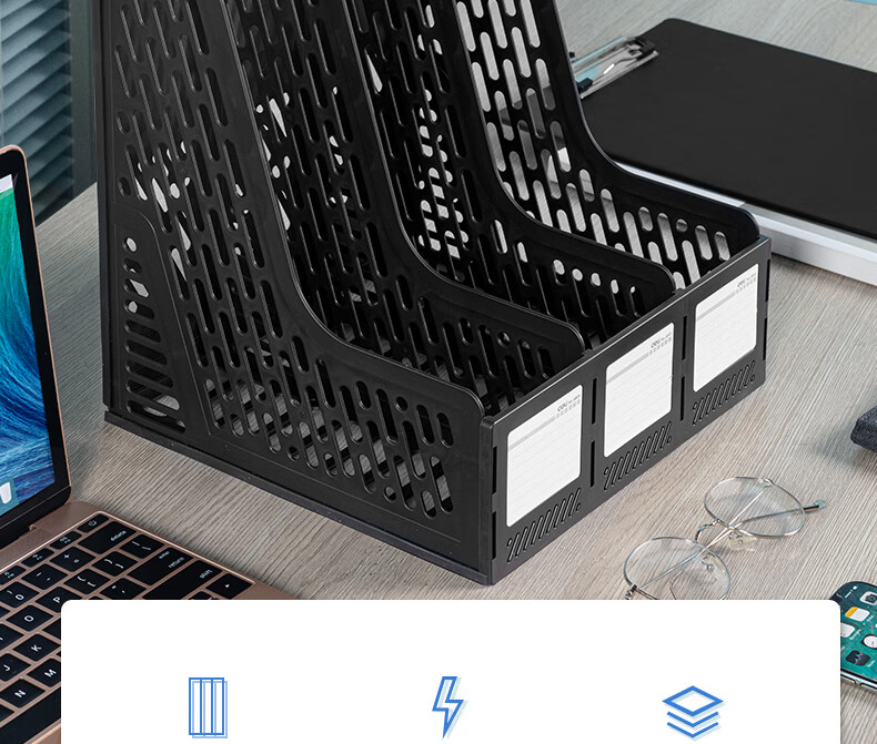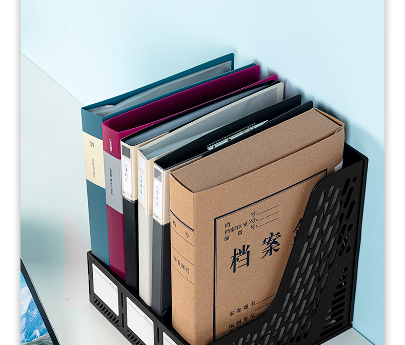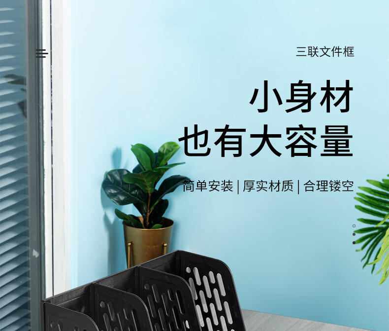 得力/deli 9845 文件筐三联镂空桌面文件框栏书立架档案收纳盒