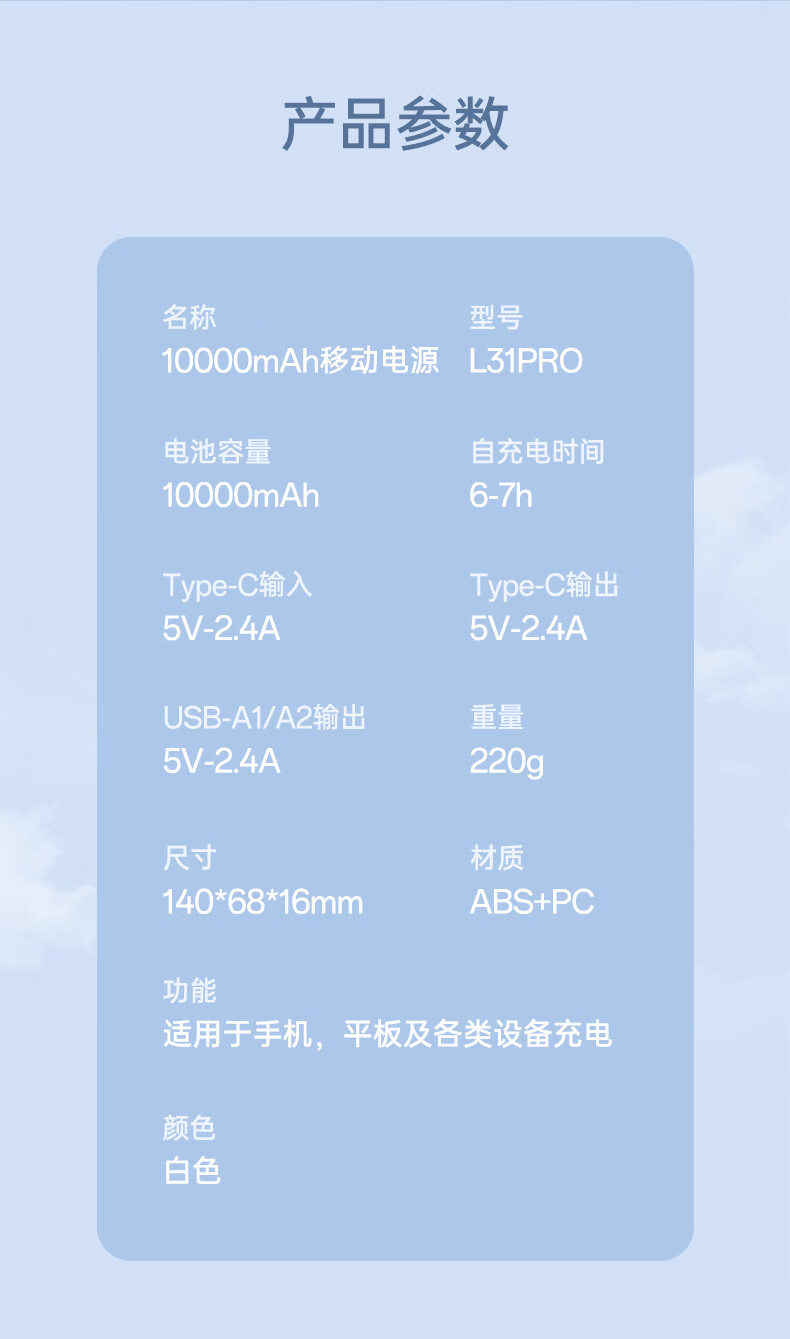 沃品/WOPOW L31Pro 手机充电器 约超薄小巧 10000毫安时
