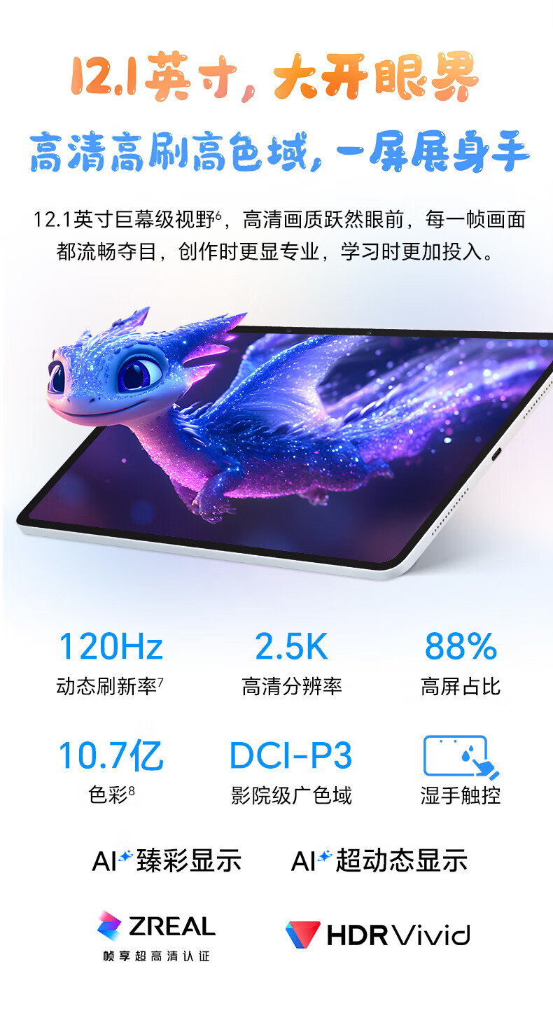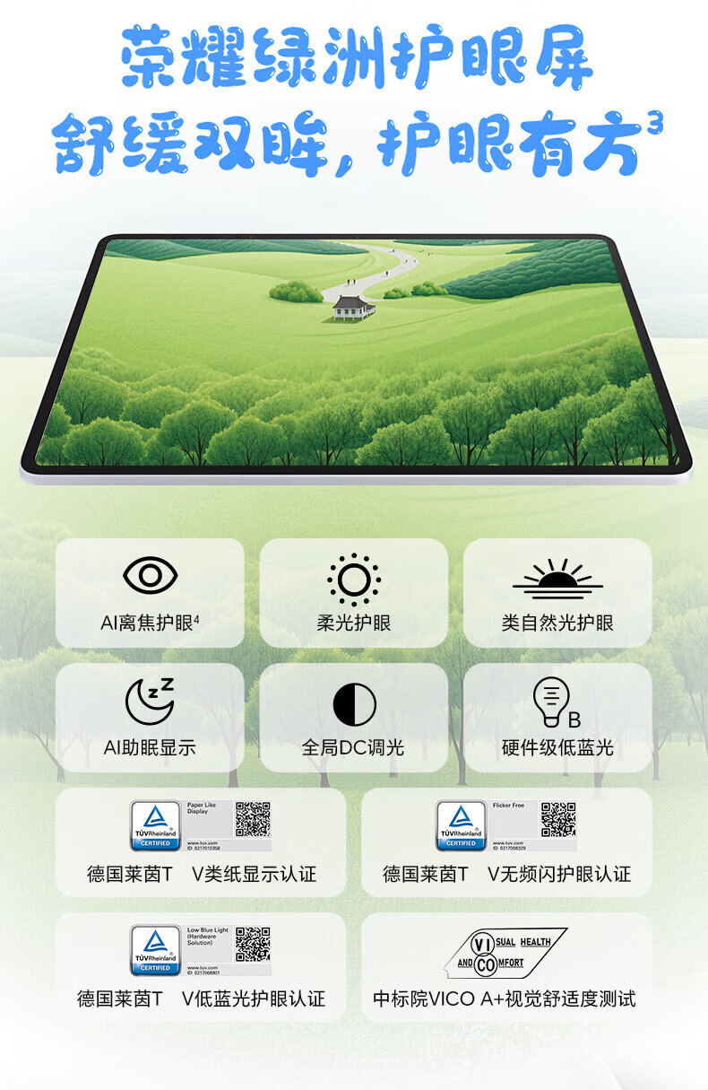 荣耀/honor 10平板式微型计算机 12.1英寸2.5K轻薄高刷护眼屏 骁龙7Gen3 学习平板 学习机 RY31 苍山灰 12GB+256GB