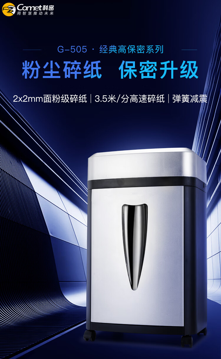 科密/Comet G505 碎纸机 2X2mm粉尘级高速高保密办公商用碎纸机 文件粉碎机( 3.5m/min高速碎纸)