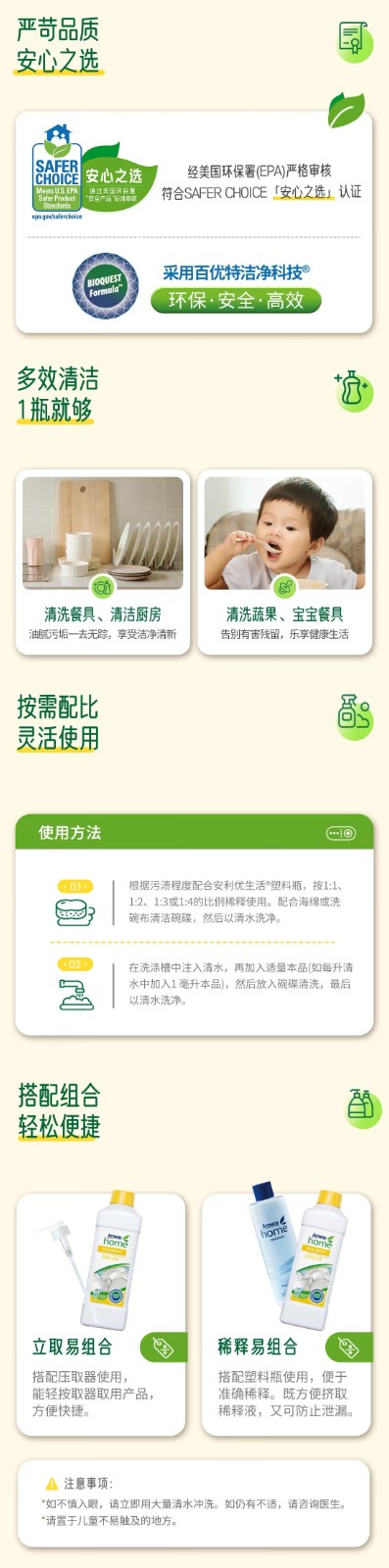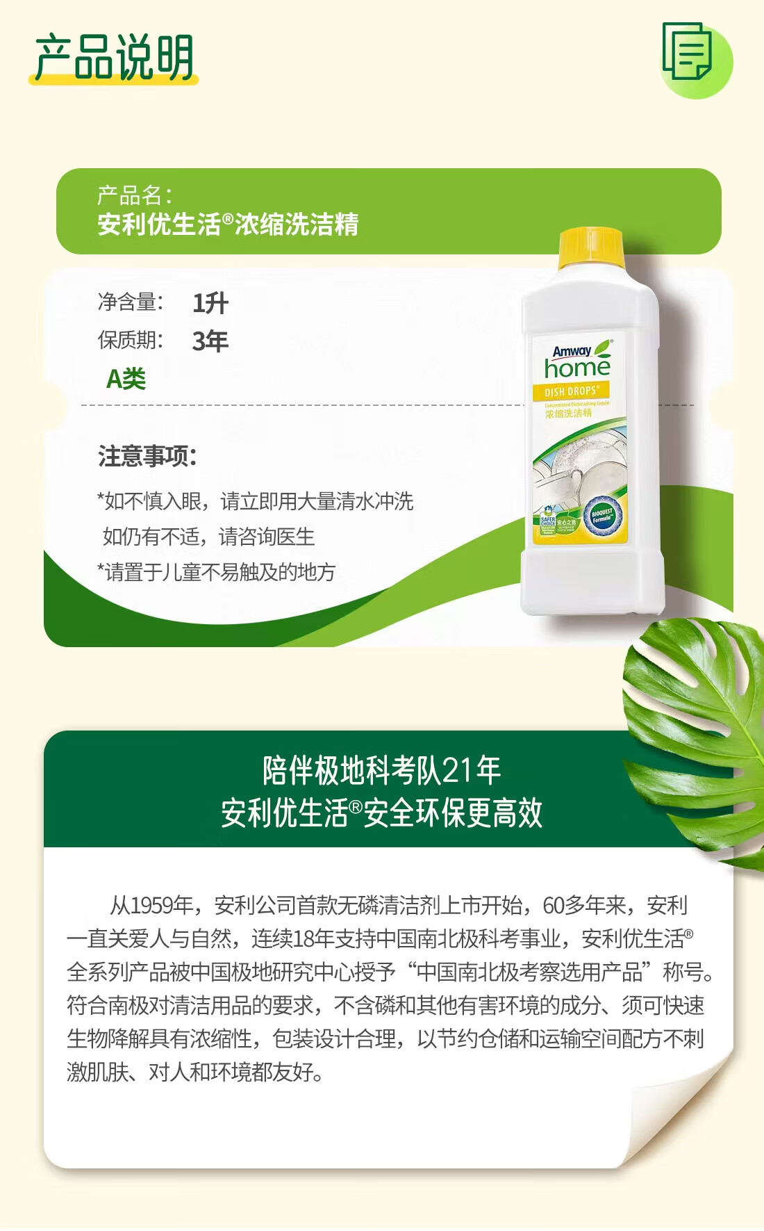 安利/Amway 1L 多用途清洁剂 不伤手洗碗液餐具果蔬清洁剂1L碟新 洗洁精1瓶