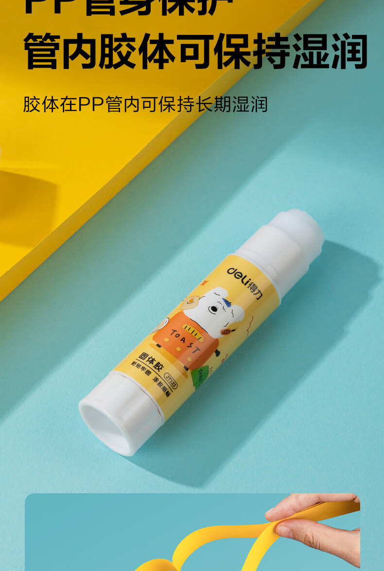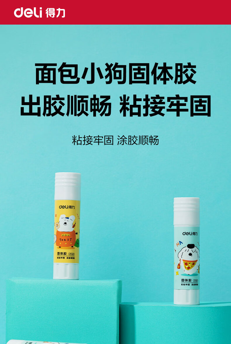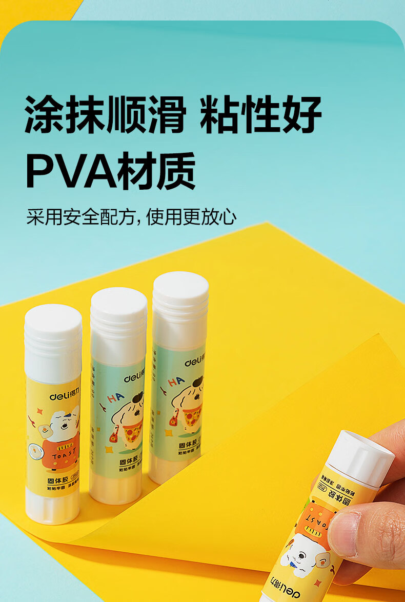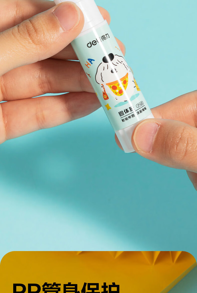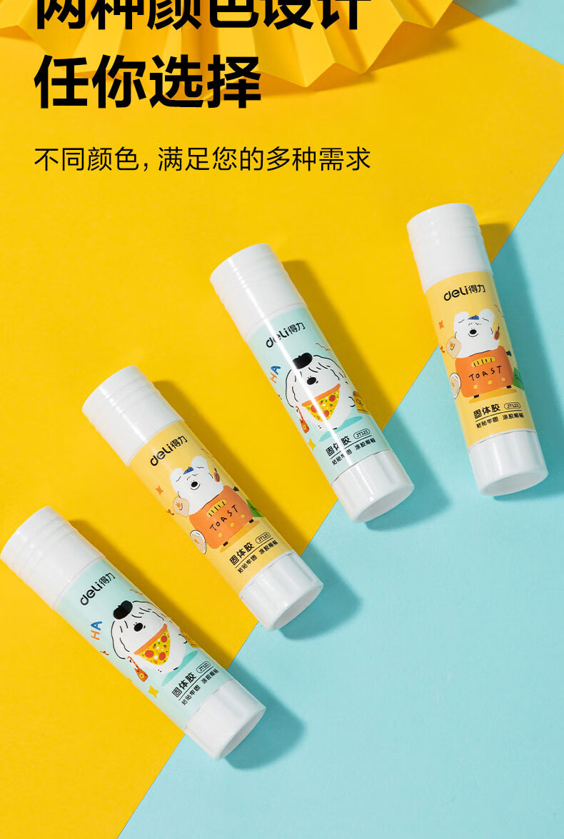 得力/deli JT123 胶棒/固体胶/胶水 9gPVA固体胶水 安全可水洗 儿童胶棒 手工学生文具 面包小狗系列 4支/盒