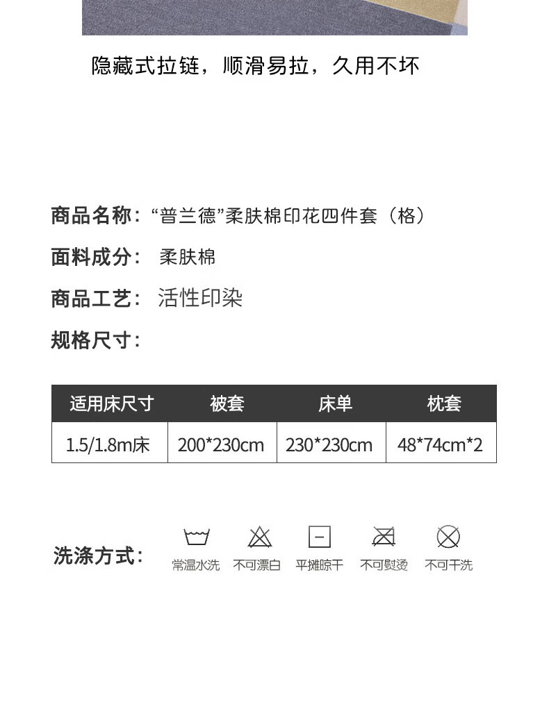 紫韵 ZY-TJ1772 被子/被单 “普兰德”柔肤棉印花四件套(格)