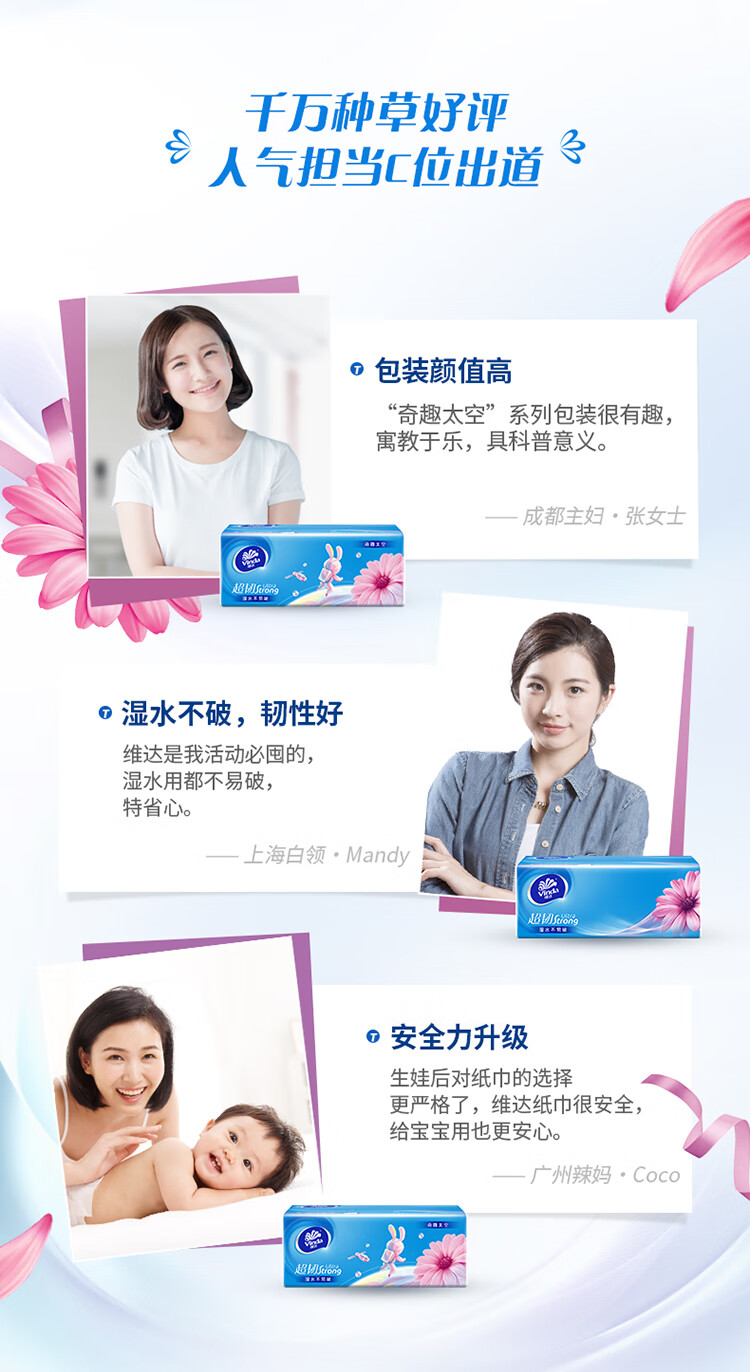 维达/Vinda V2282-A 软包抽取式面纸 超韧抽纸3层24包110抽