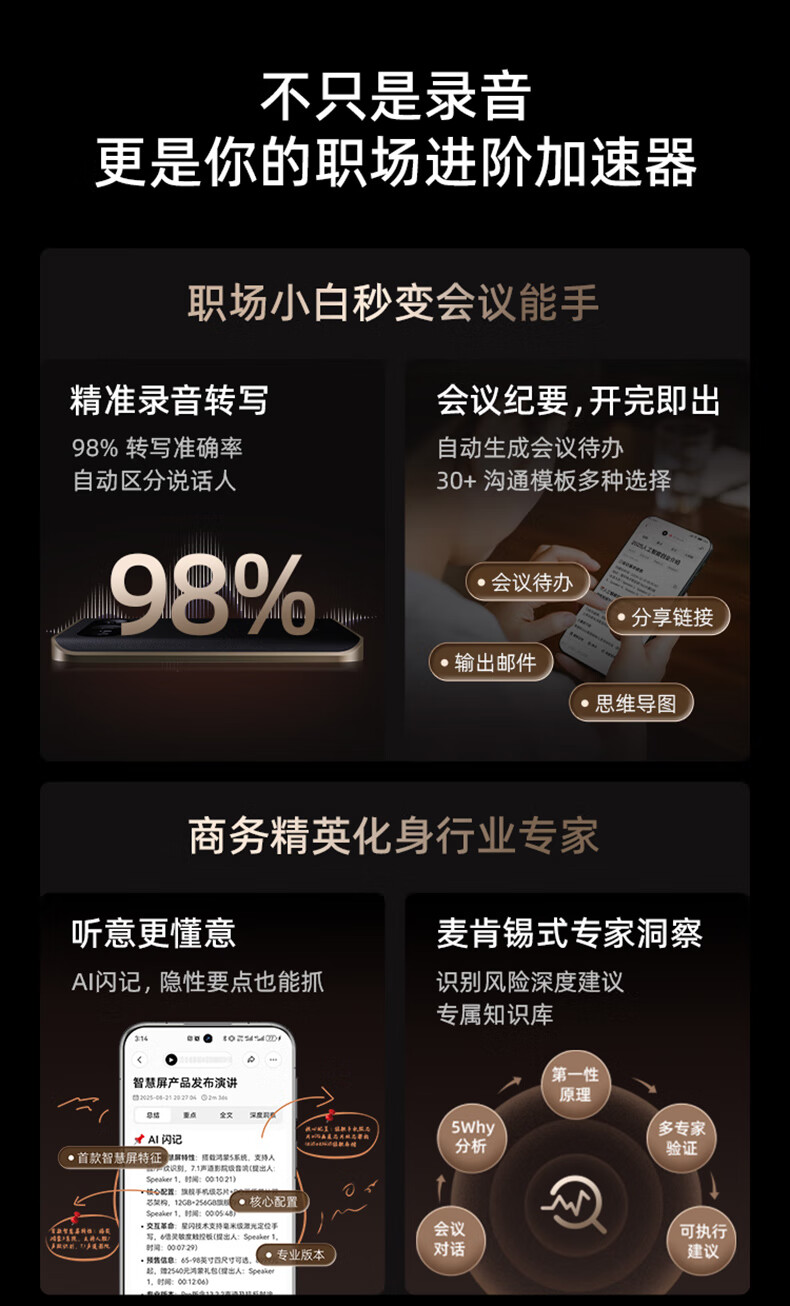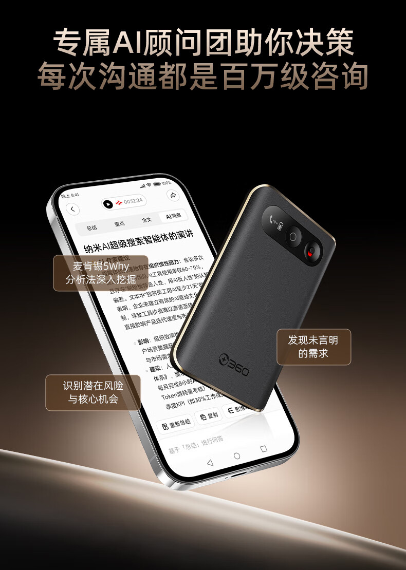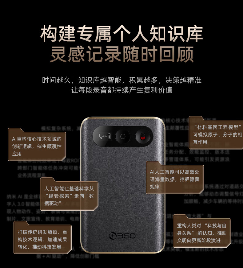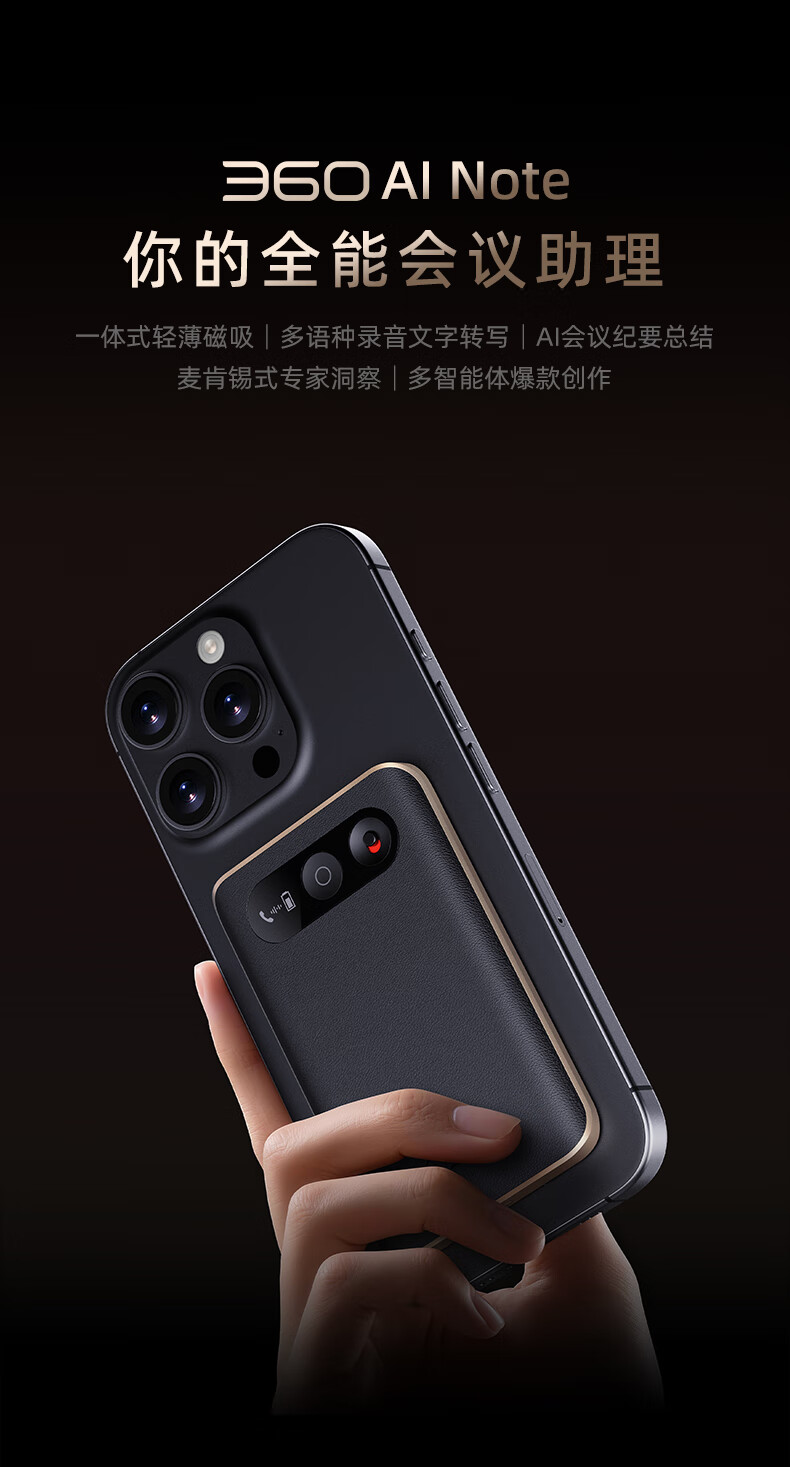 360 AI NOTE(PRO)录音外围设备 录音笔全能会议助手多国语言录音文字转写AI闪记2025 多语种AI转写