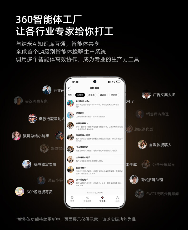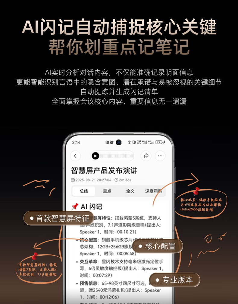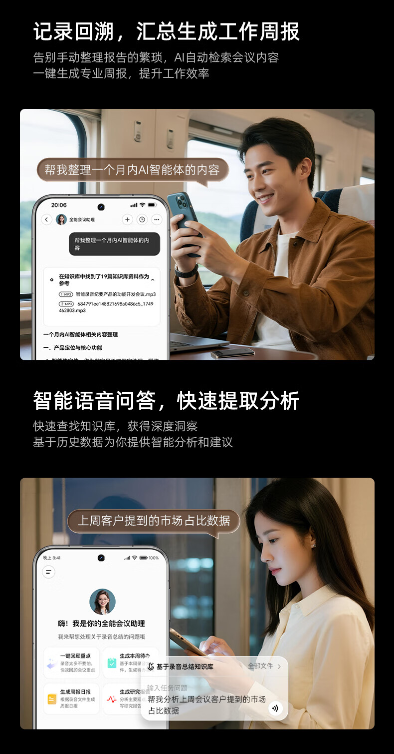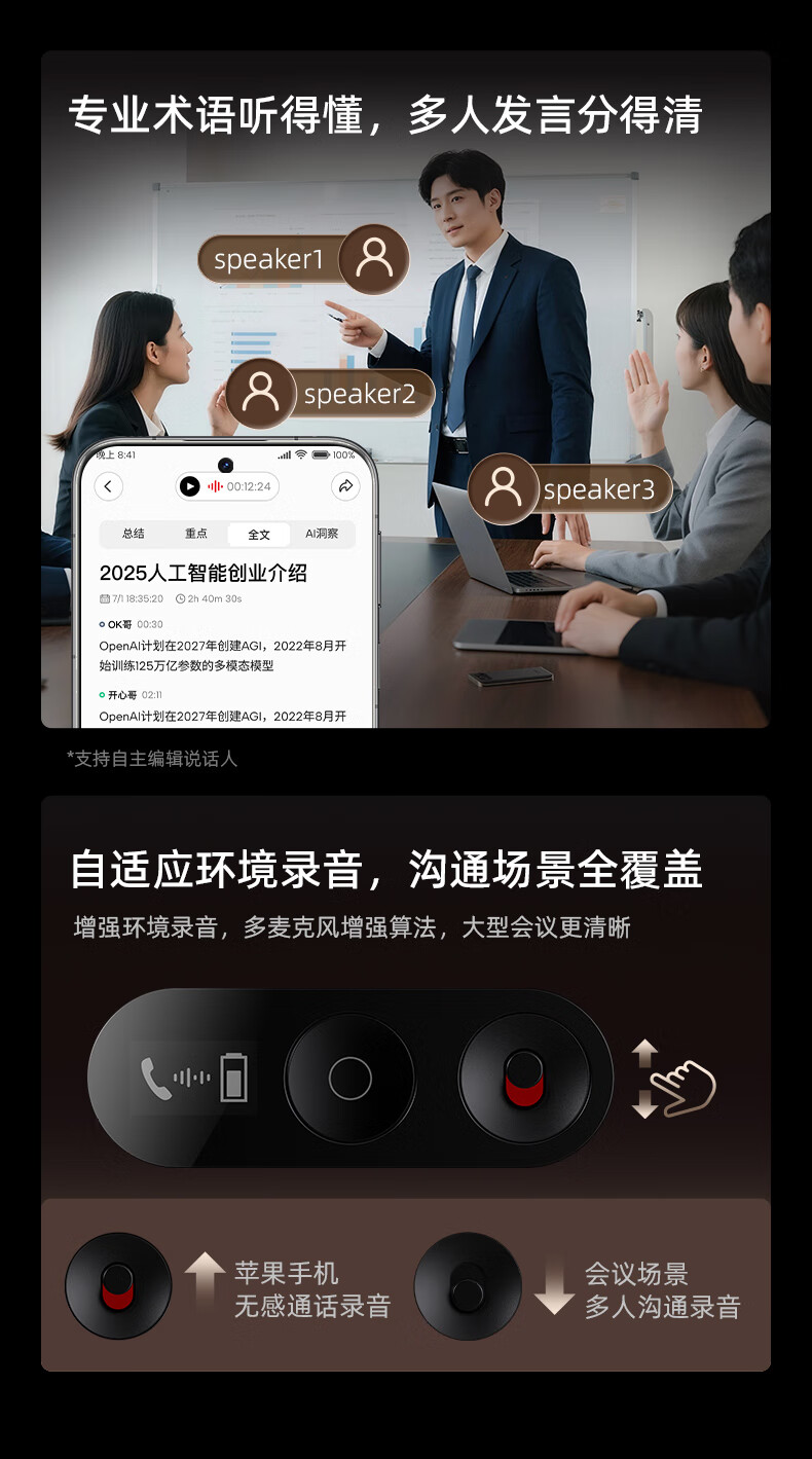 360 AI NOTE(PRO)录音外围设备 录音笔全能会议助手多国语言录音文字转写AI闪记2025 多语种AI转写