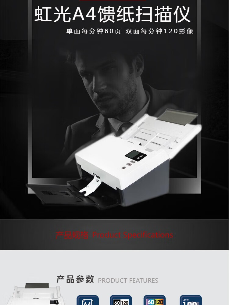虹光/Avision AF345G 扫描仪 高速彩色双面馈纸式A4扫描仪每分钟62页124个影像