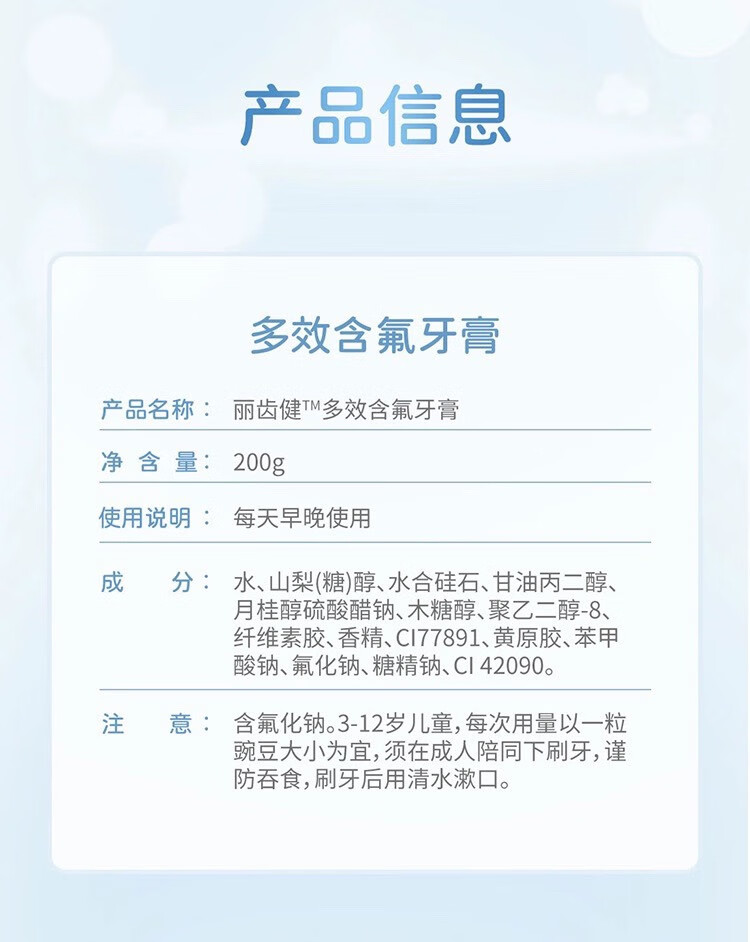 安利/Amway 200 牙膏 丽齿健含氟多效白茶防蛀 牙膏白茶味200g支
