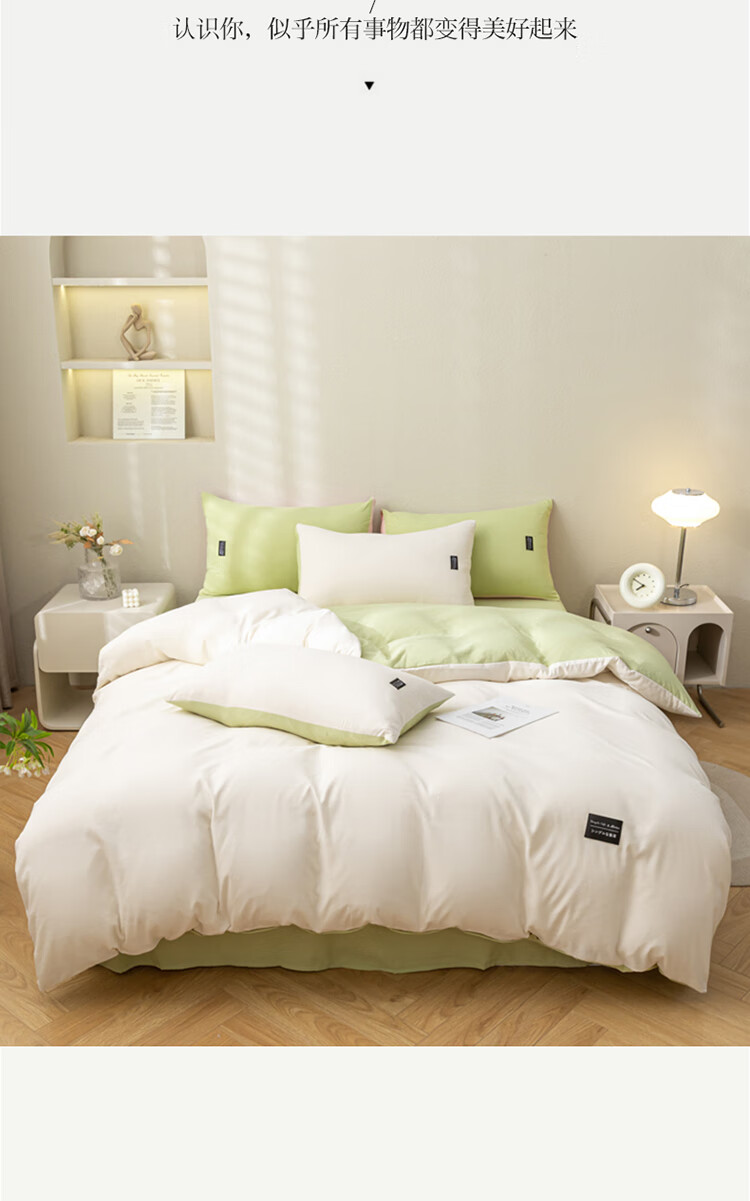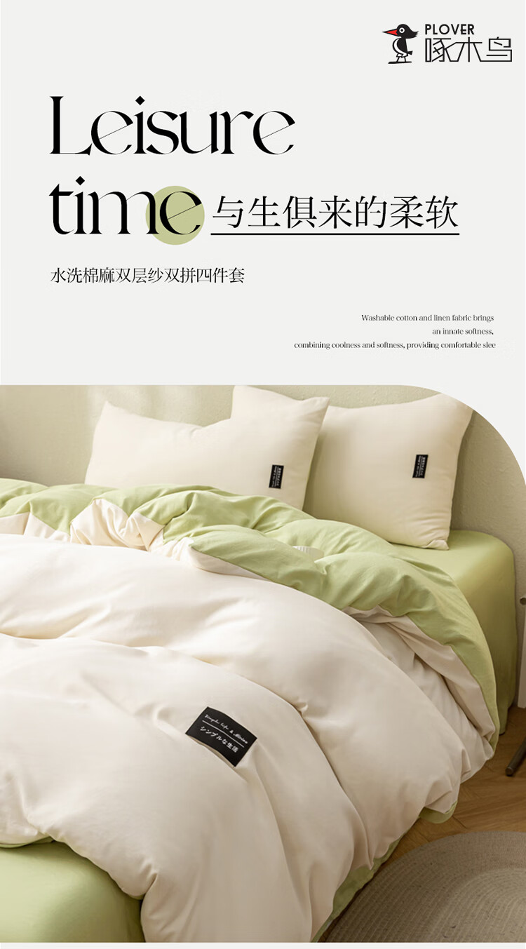 啄木鸟 ZMN-MM002 被子/被单 水洗棉麻床笠四件套-绿豆