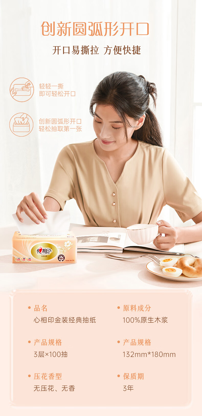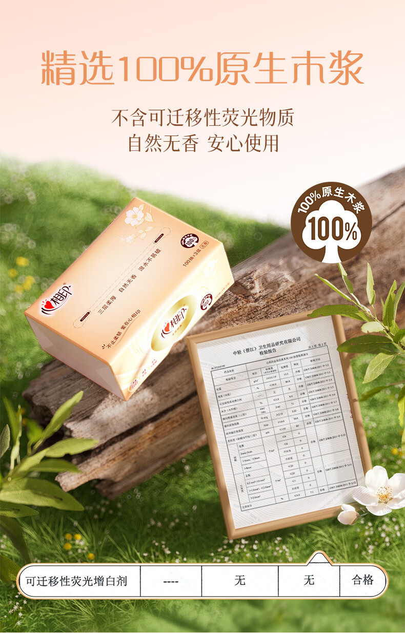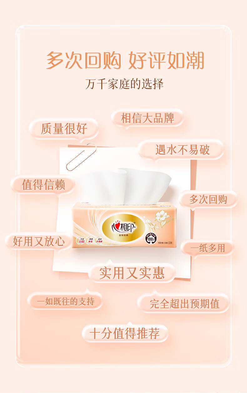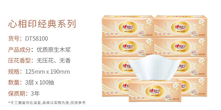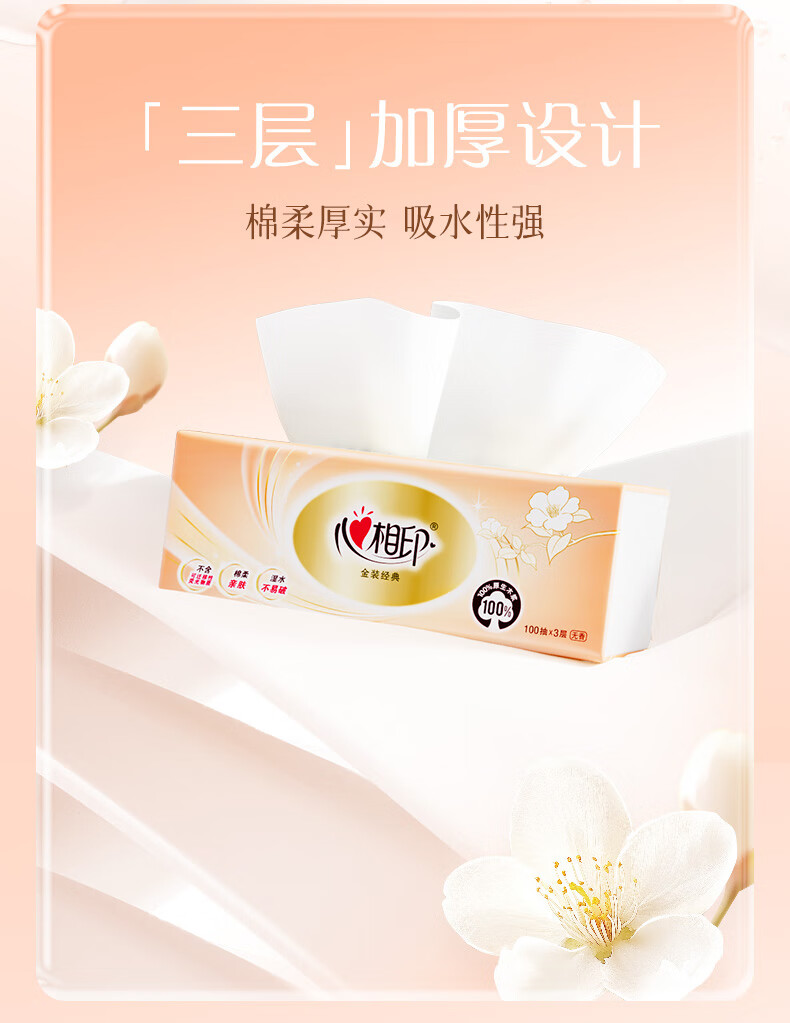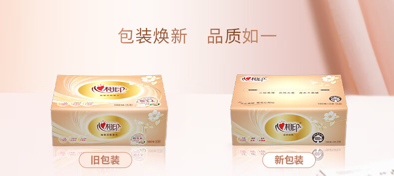 心相印/MindActUponMind DT58100 软包抽取式面纸 心相印金装金典100抽三层塑装纸面巾20包装
