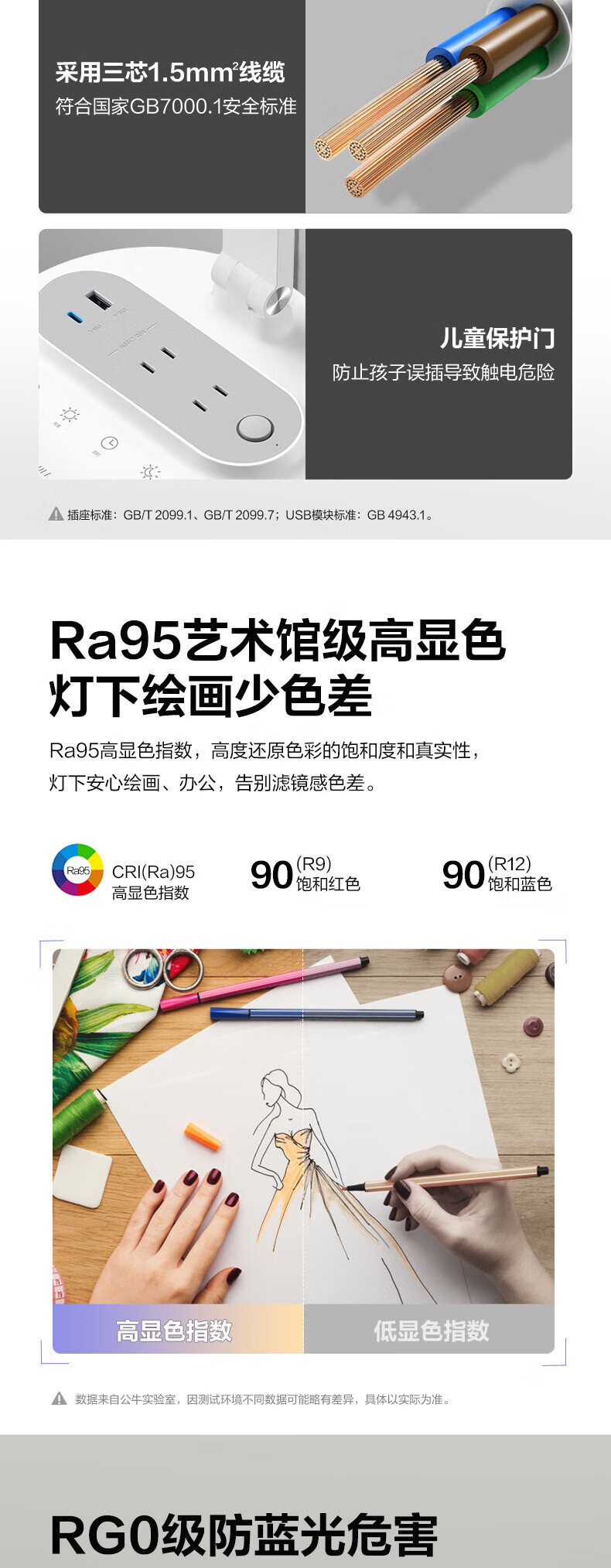 公牛/BULL ML-J006Y-CS台灯/壁灯/床头灯/落地灯 星阅插座台灯68W快充