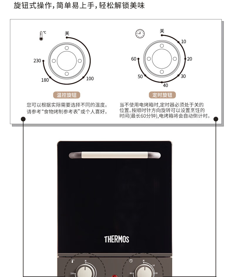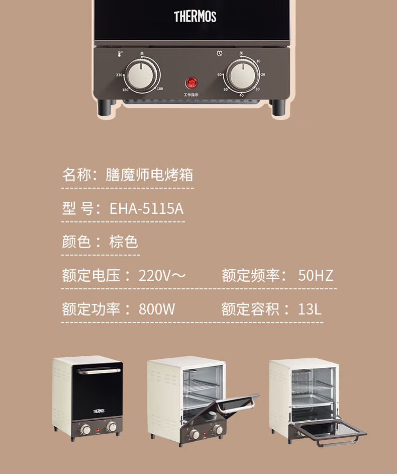膳魔师/THERMOS EHA-5115A烤箱 电烤箱立式定时温控 13L