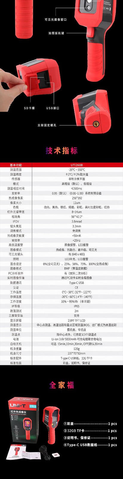 优利德/UNI-T UTi260B 温度计量标准器具 高清红外热成像仪