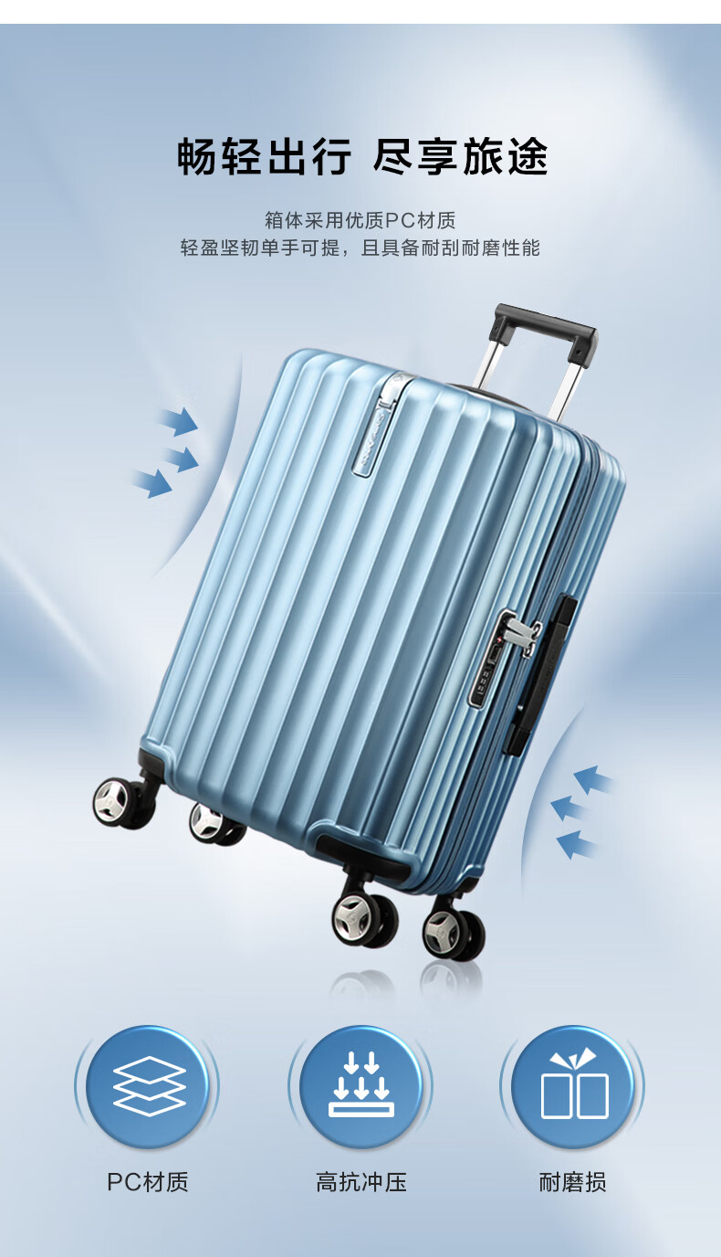 新秀丽/samsonite 09002 旅行箱 24英寸拉杆箱时尚密码登机箱竖条纹旅行箱包黑色