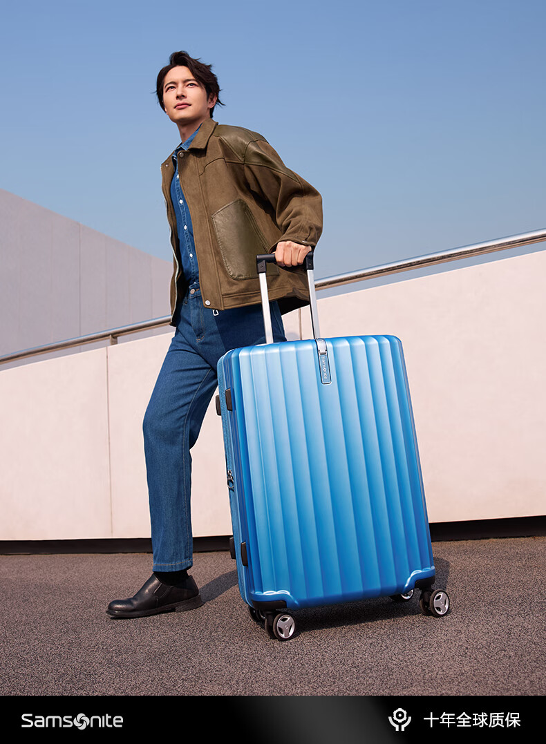 新秀丽/samsonite 09003 旅行箱 26英寸拉杆箱时尚密码登机箱竖条纹旅行箱包黑色