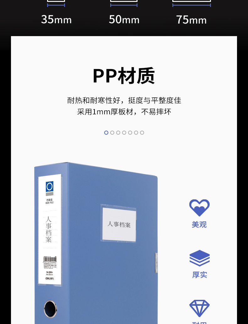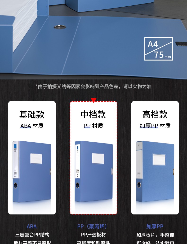 得力/deli 5604 文件夹 加宽75mmA4文件盒批发 加厚党建档案盒 桌面考试收纳