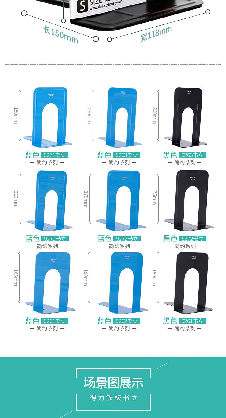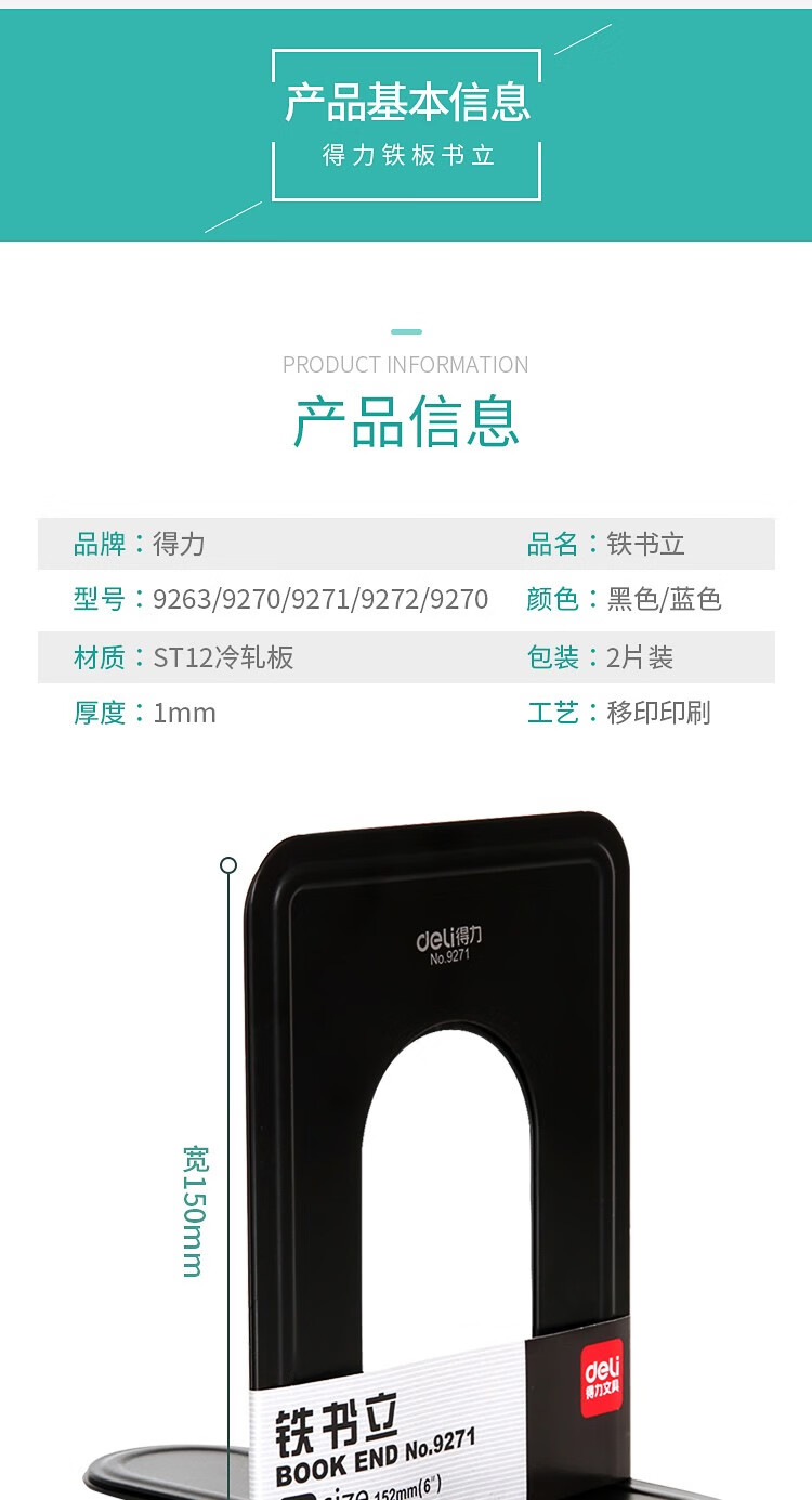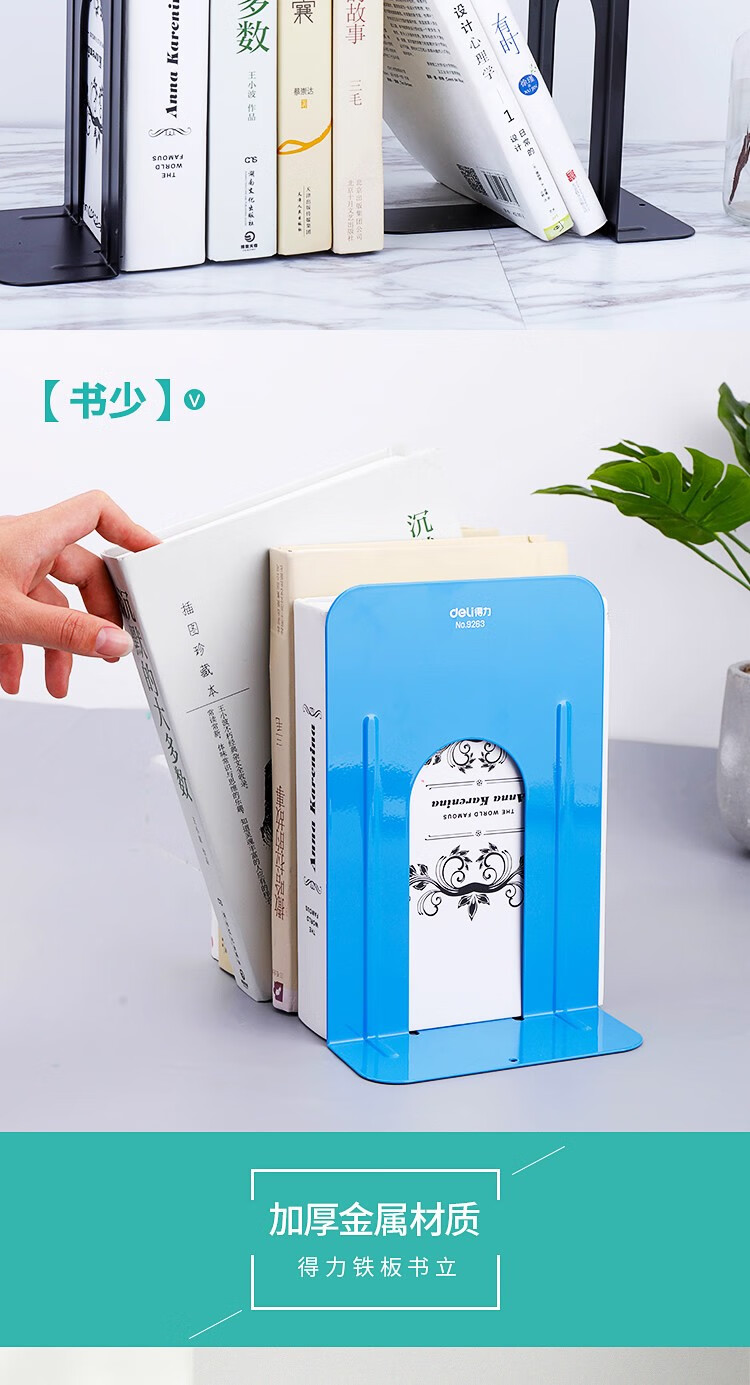 得力/deli 9263 书立 铁挡书板立书架夹隔书板【两片/一对价】 大号黑色 23cm高度