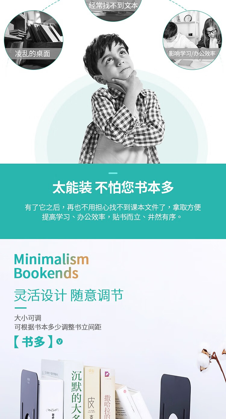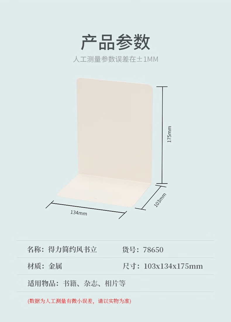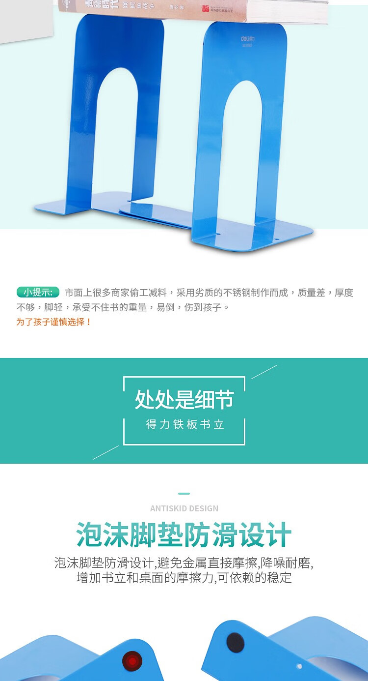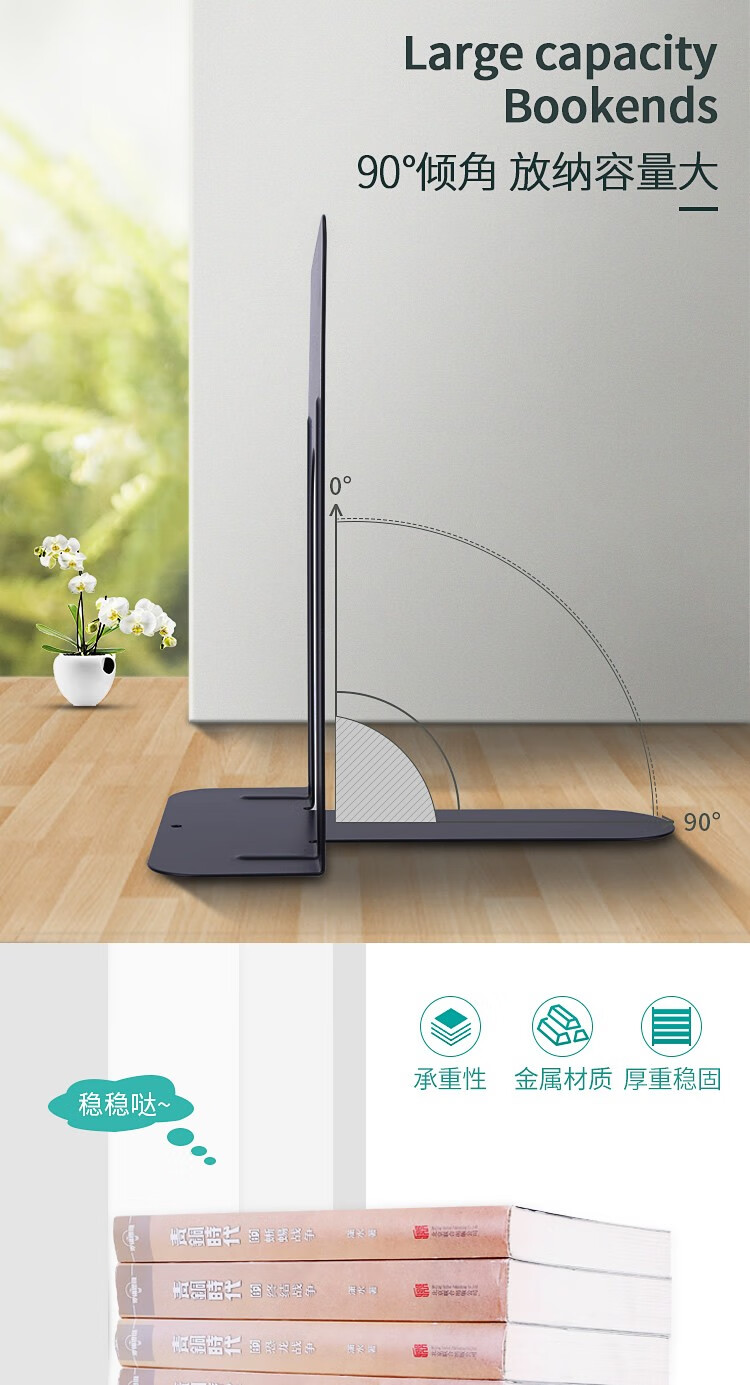 得力/deli 9263 书立 铁挡书板立书架夹隔书板【两片/一对价】 大号黑色 23cm高度