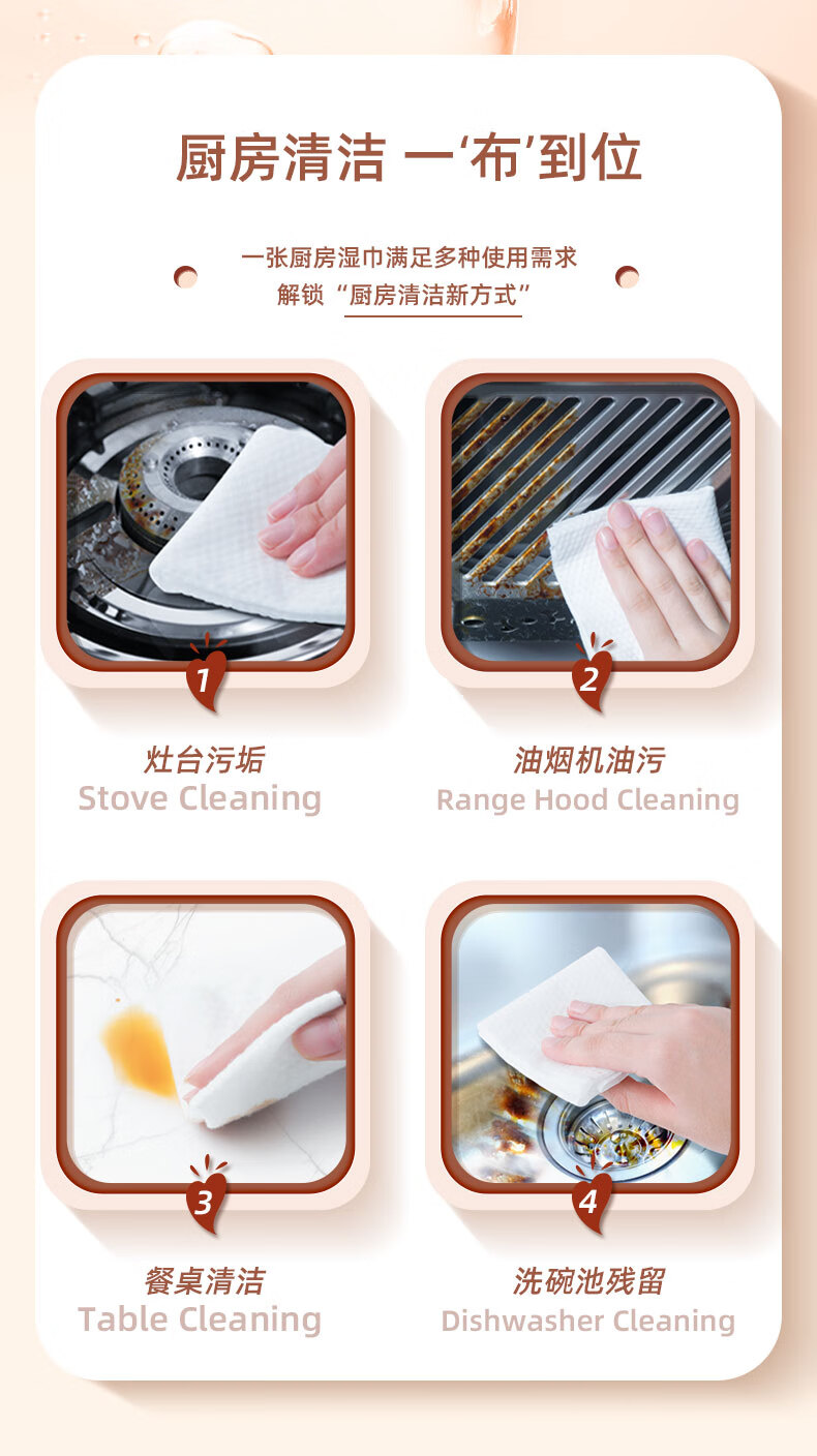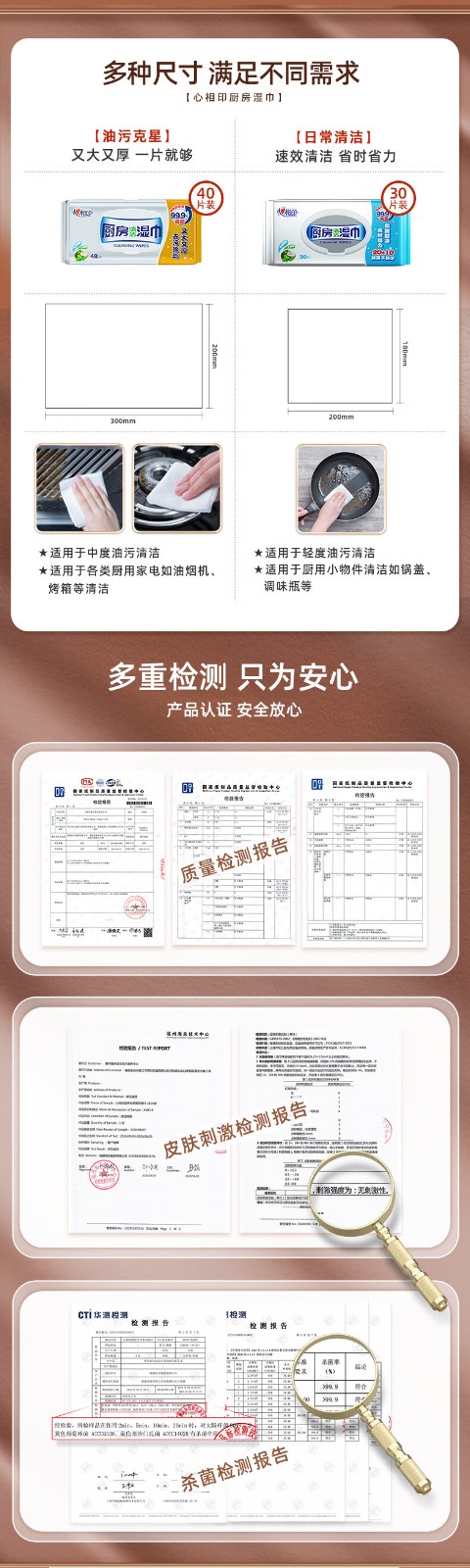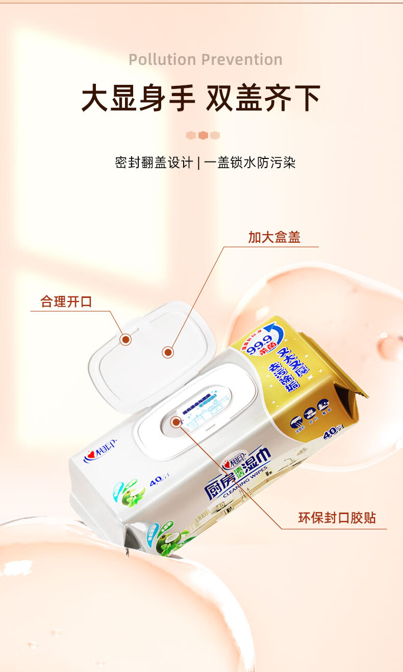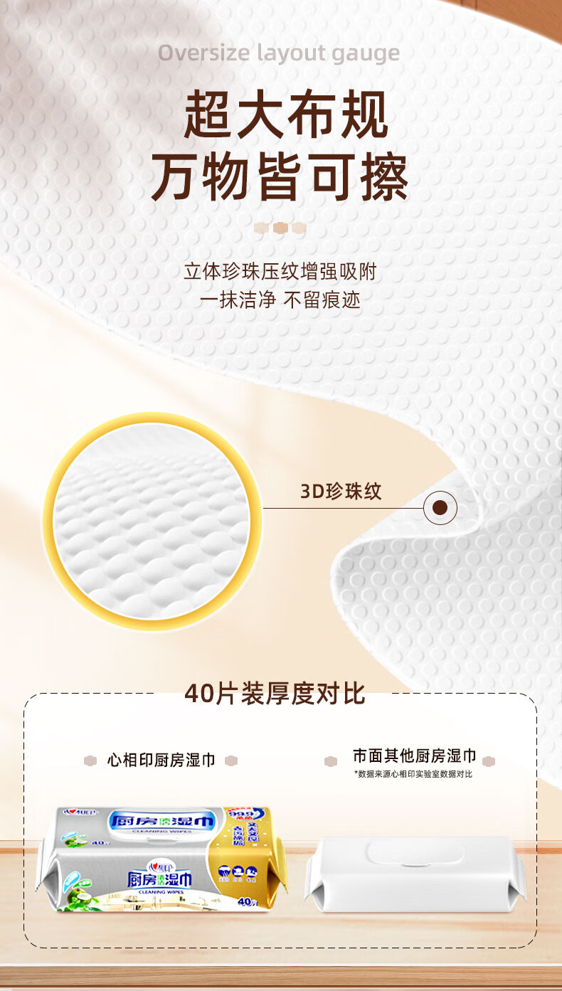 心相印/MindActUponMind XJB040+P1 湿巾/手帕纸 心相印厨房专用系列40片装湿巾3包装(金装)