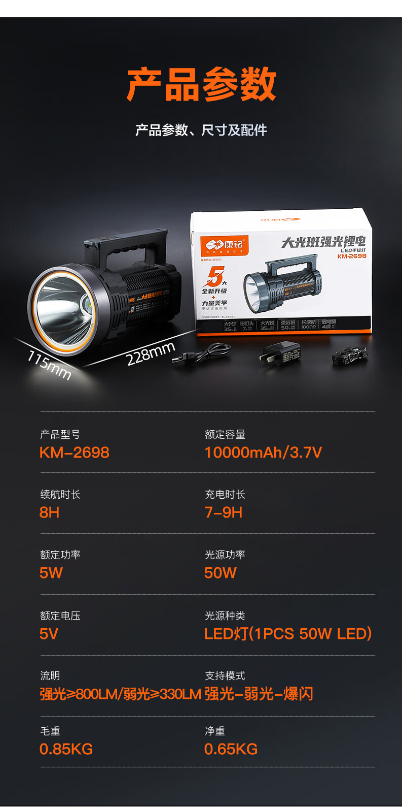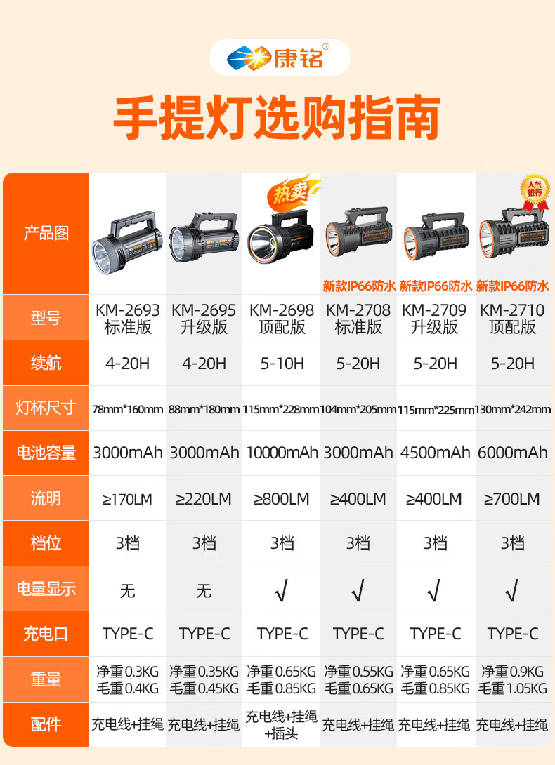 康铭/KANGMING KM-2710 应急照明灯 80W+IP66防水等级+电量显示+2710