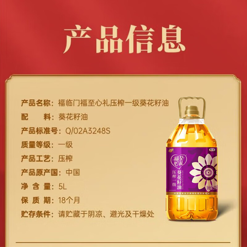 福临门 5000 葵花油 福临门福临门福至心礼 葵花籽油 压榨一级 5L 葵花籽油 5L