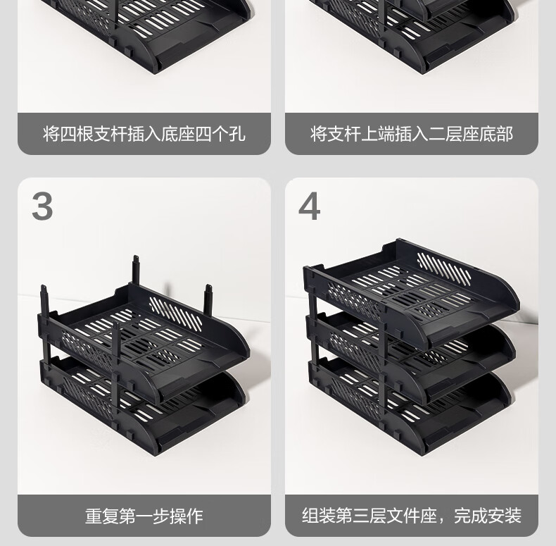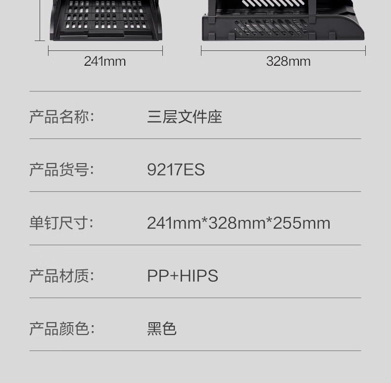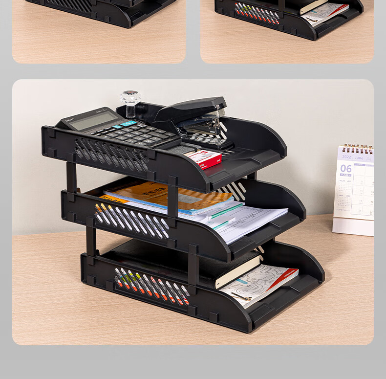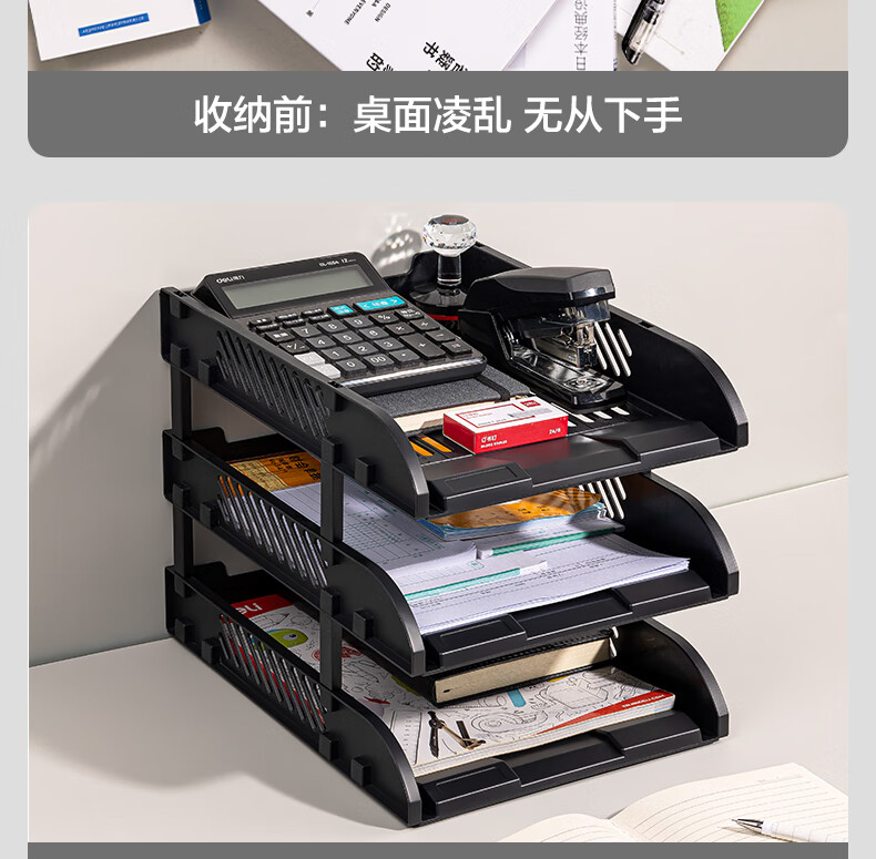得力/deli 9217ES 文件筐 三层镂空收纳文件座自由拆卸组装三层文件盘