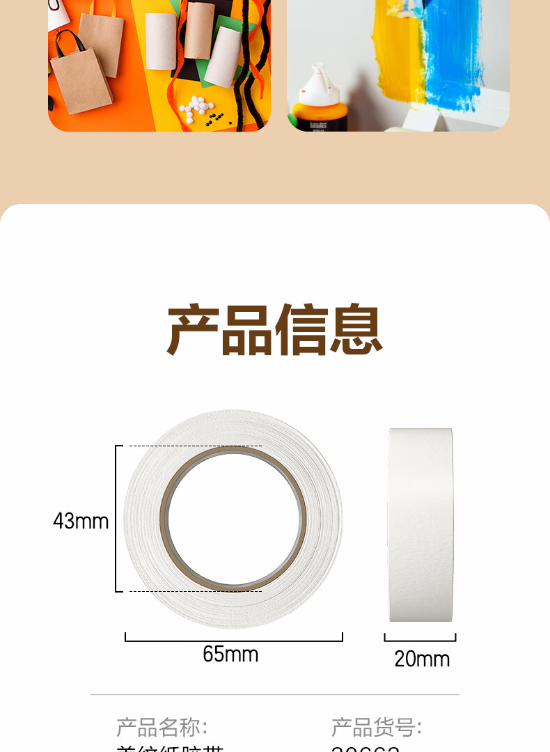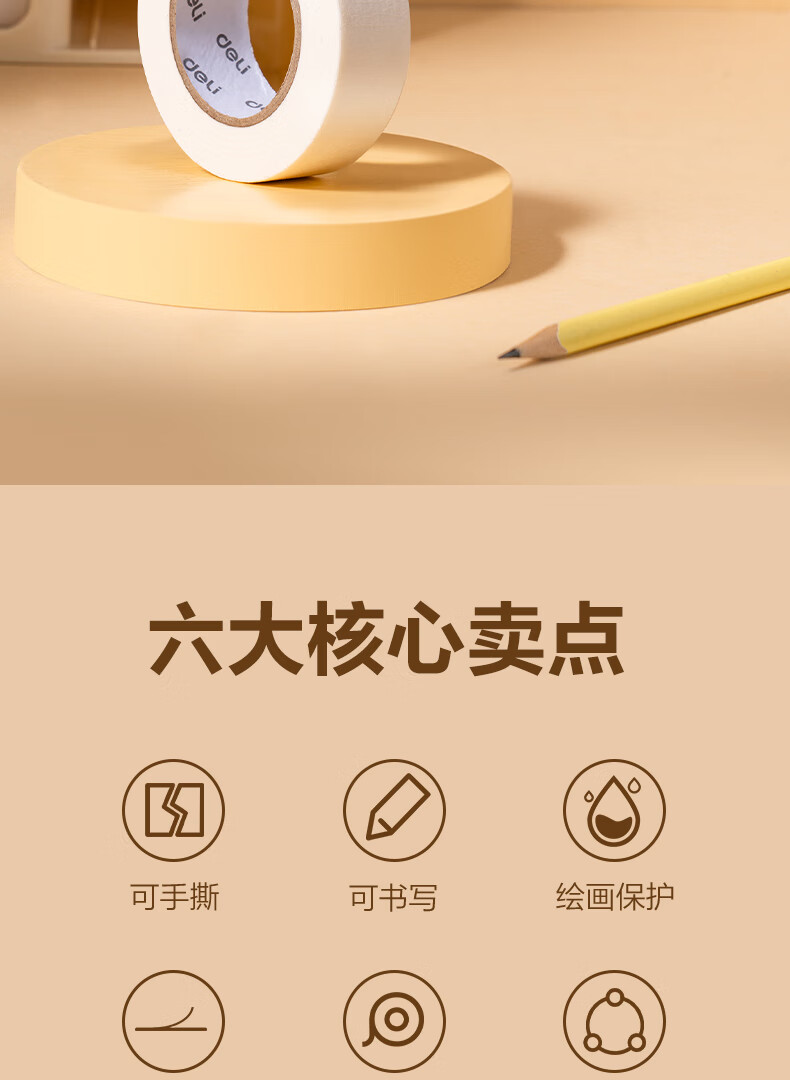 得力/deli 30663 胶带 20mm*20y*145μm 美术美工分色 装修遮蔽美缝贴膜刷漆保护无痕贴纸 小卷芯1卷