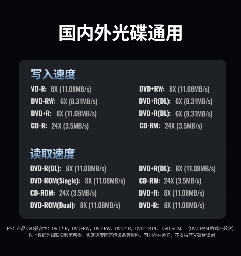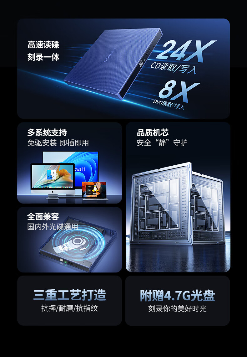 绿联/UGREEN CM138 光驱 USB+Type-C双口传输】高速读刻 即插即用
