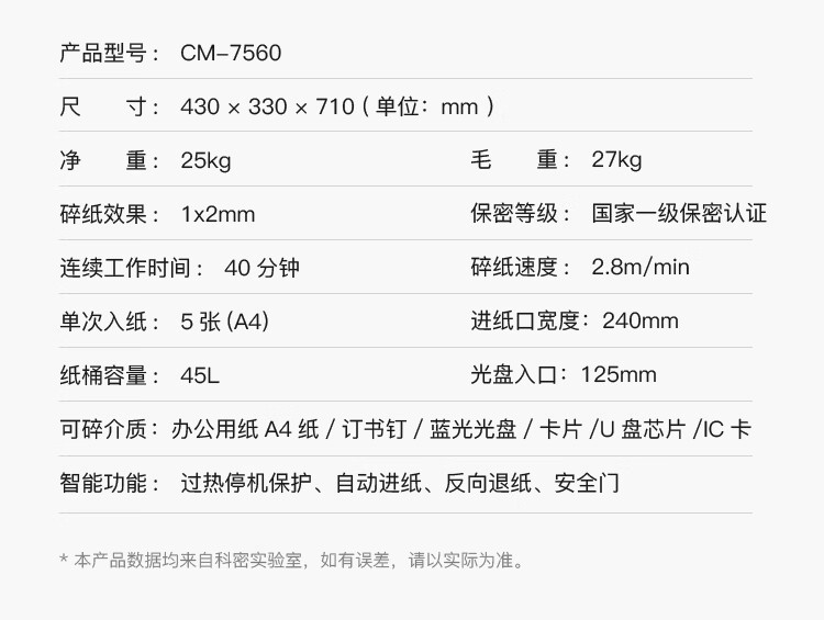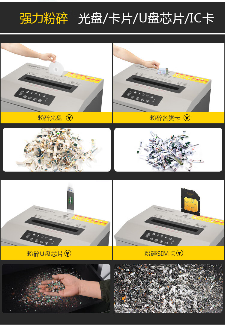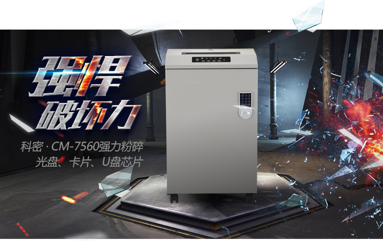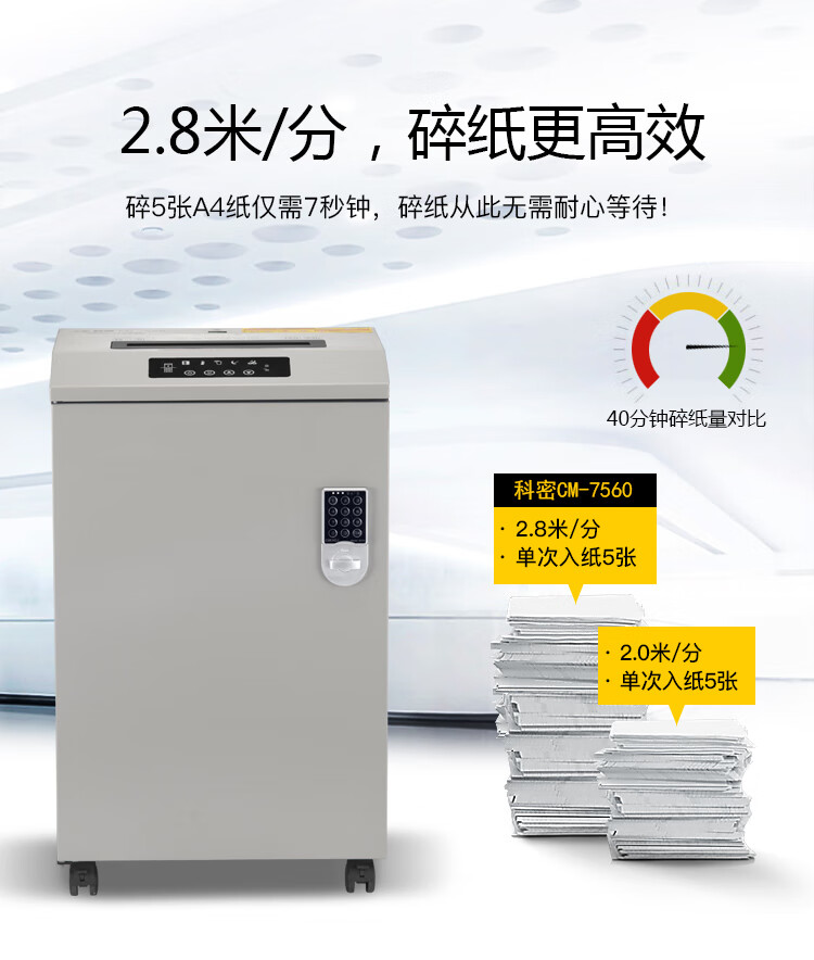 科密/Comet CM-7560 碎纸机 国家保密认证一级 1*2毫米 保密商用碎纸机 ( 5张/次 纸 碎卡 光盘 40分钟 45L)