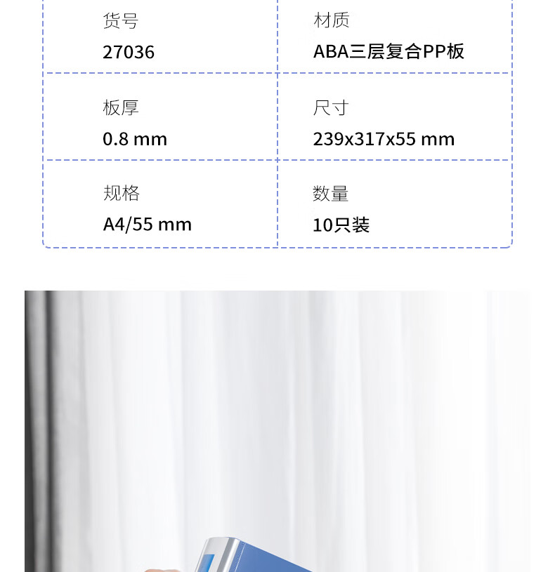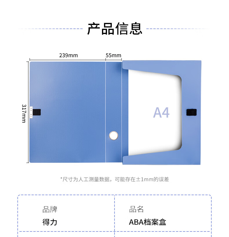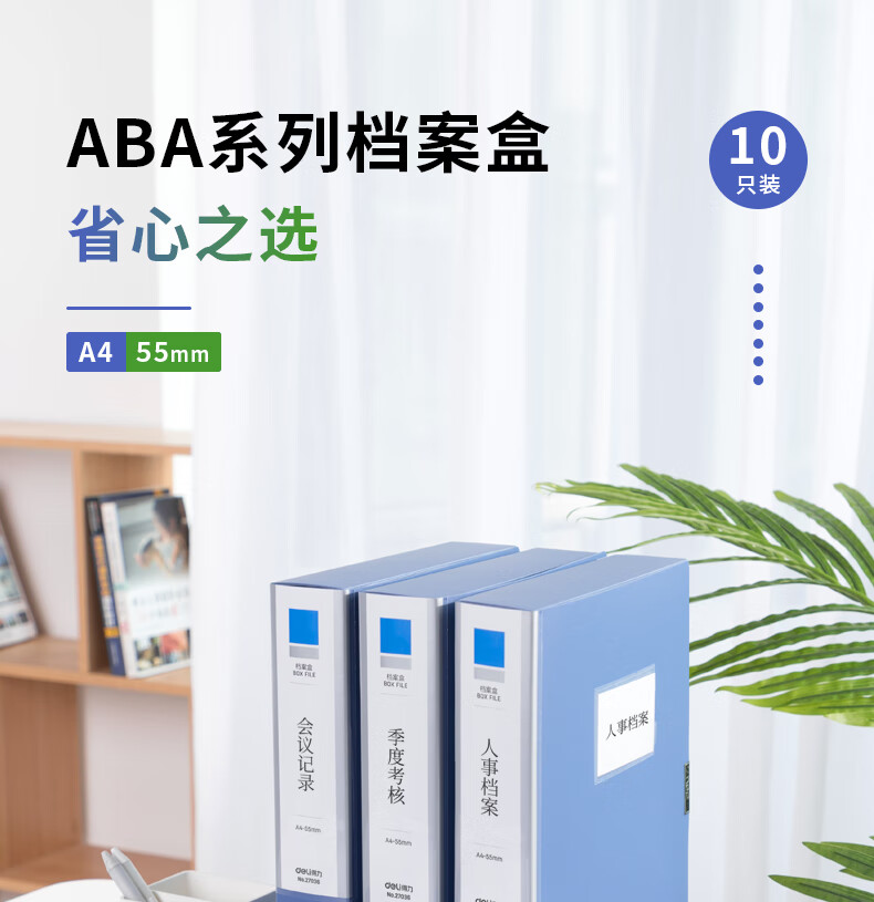 得力/deli 27036 文件夹 10只55mmA4加厚PP粘扣文件盒档案盒