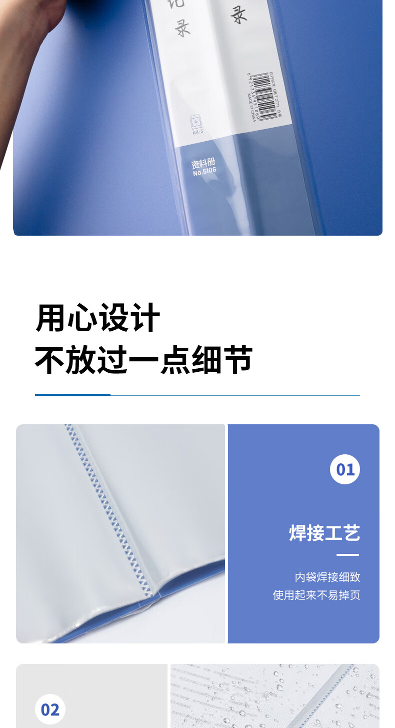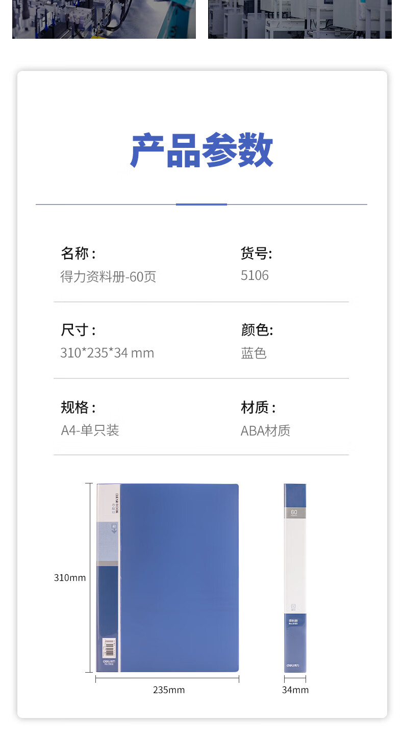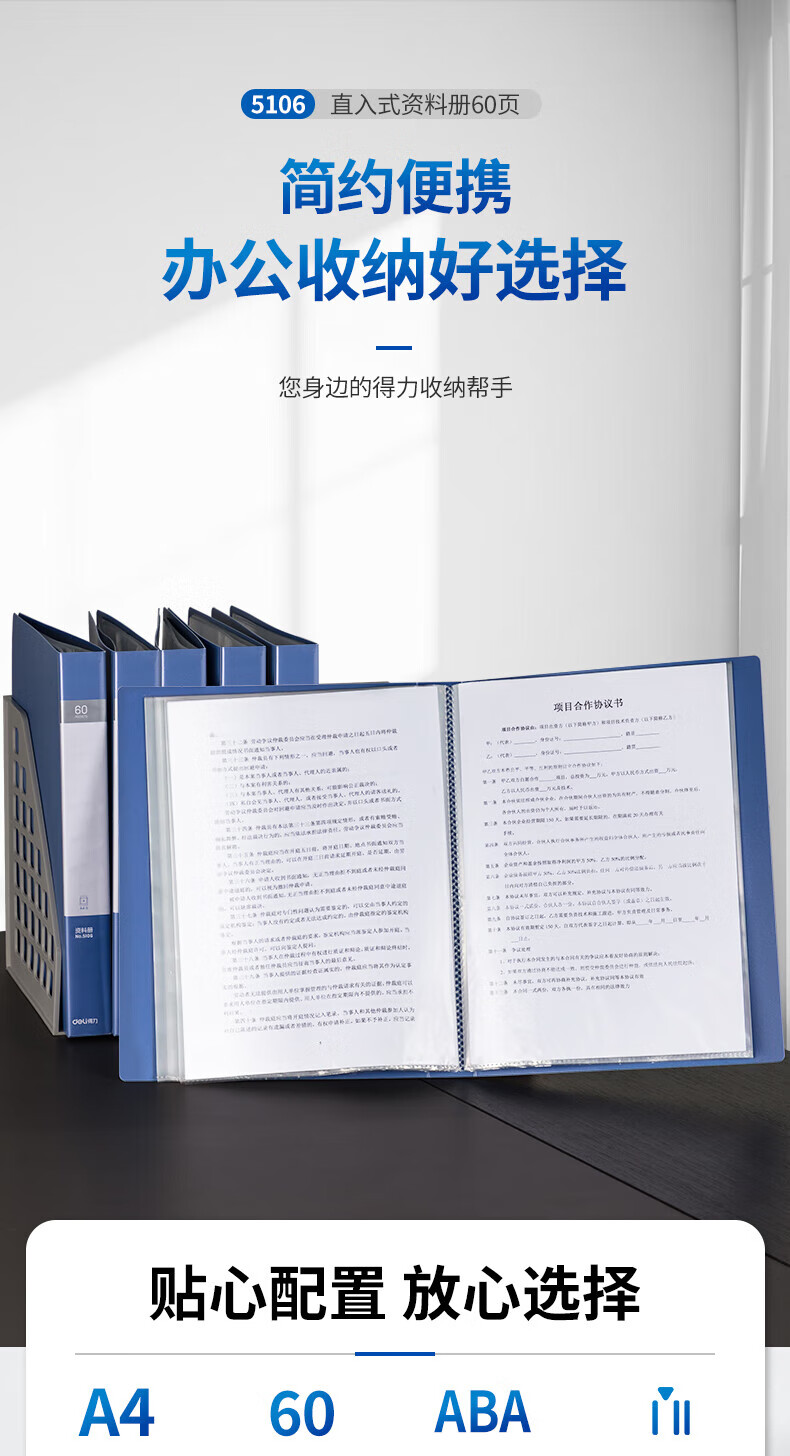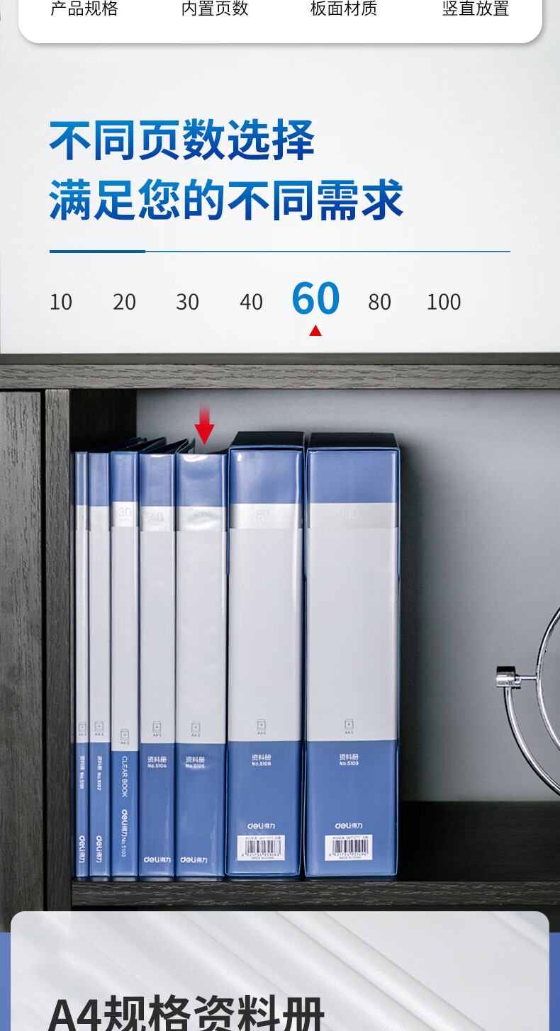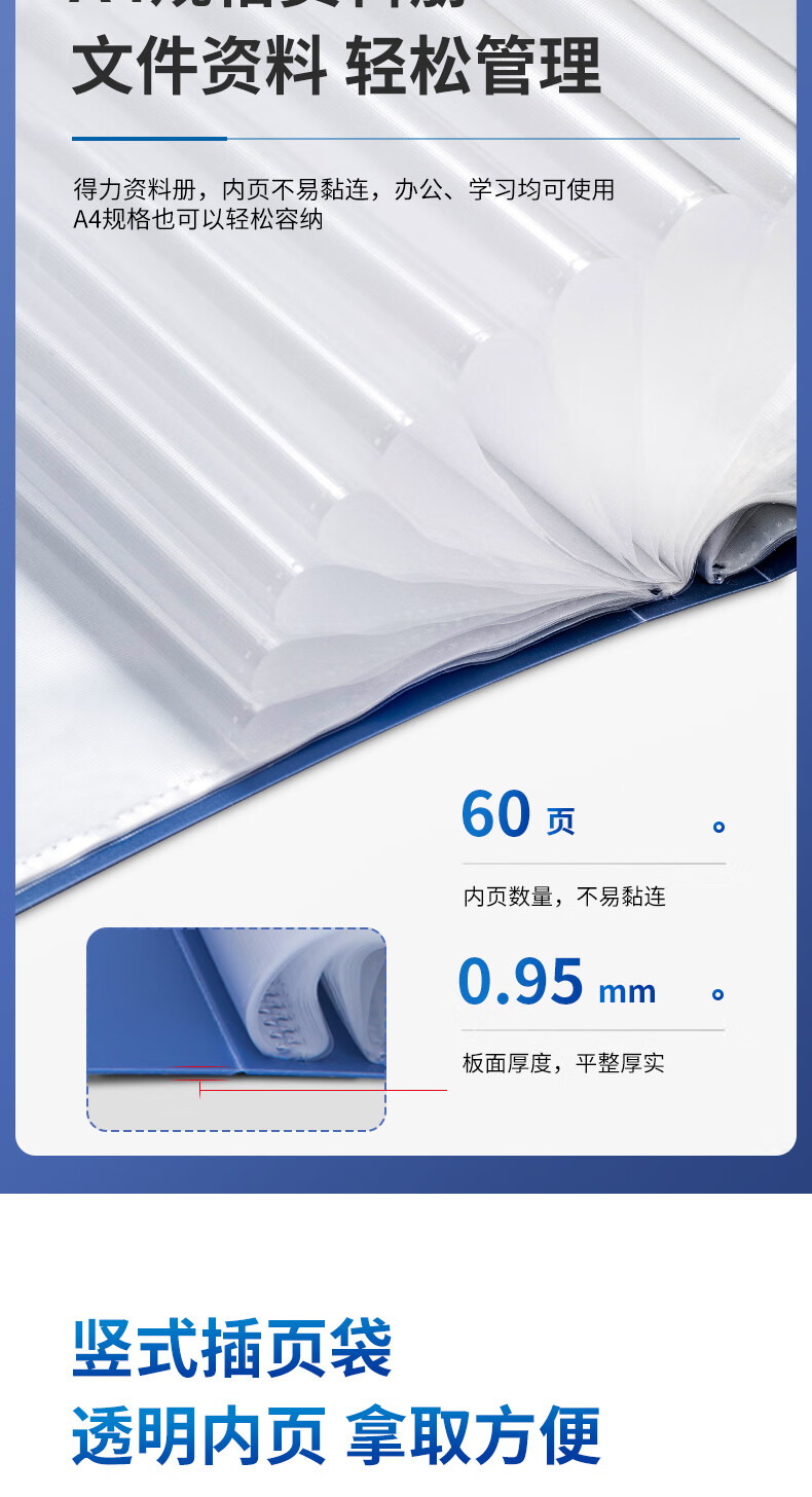 得力/deli 5106 文件夹 A4/60页资料册文件活页收纳册插袋