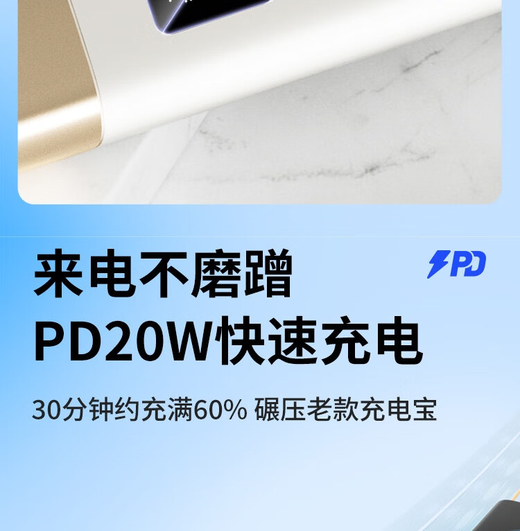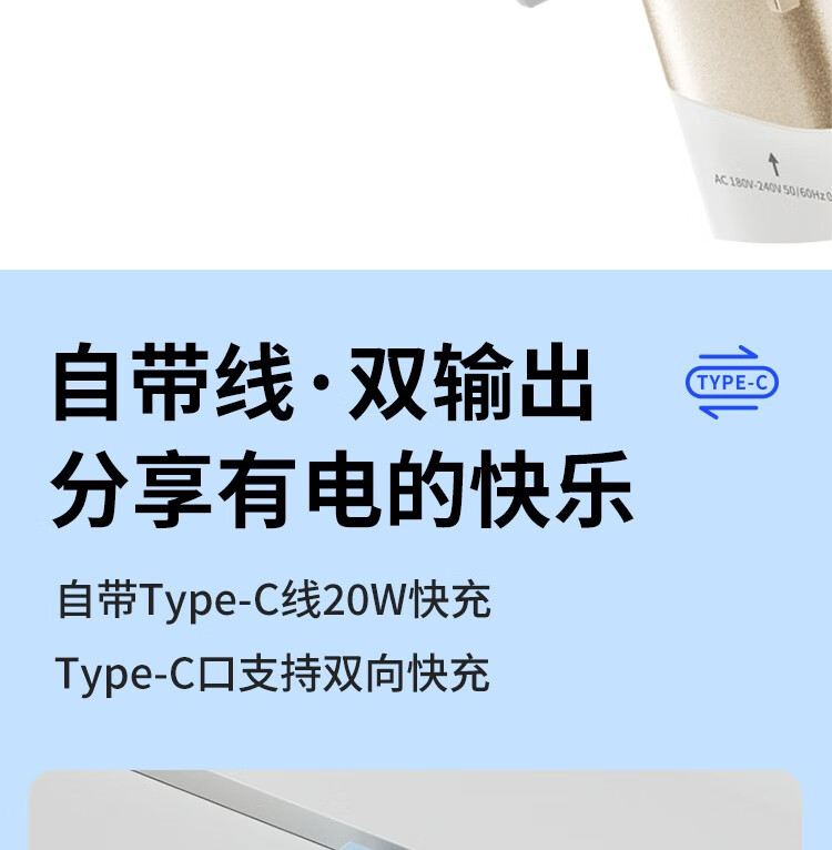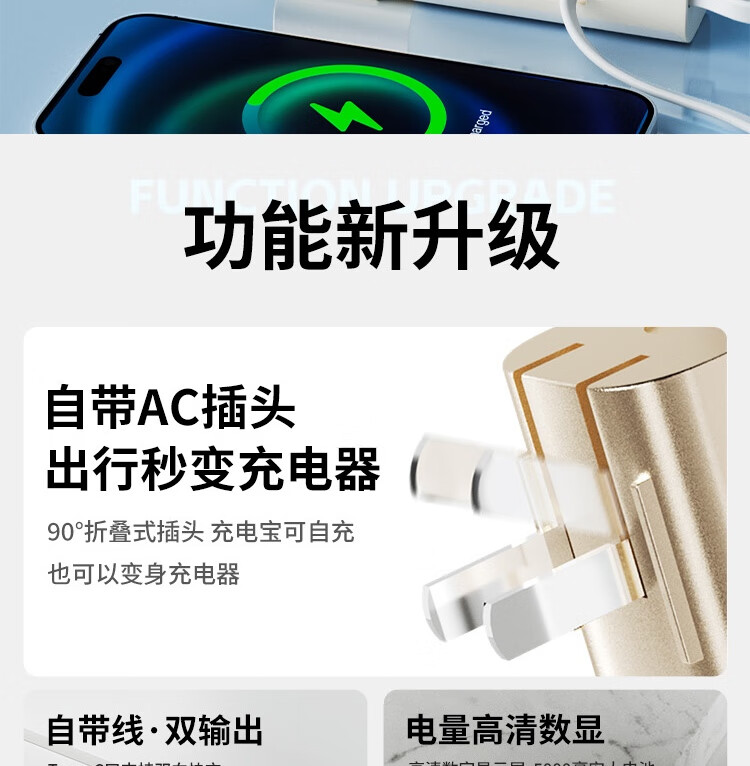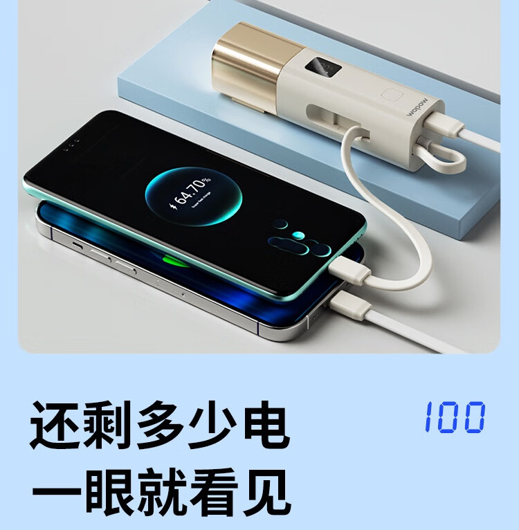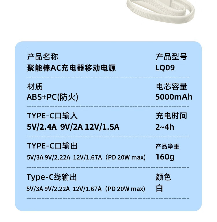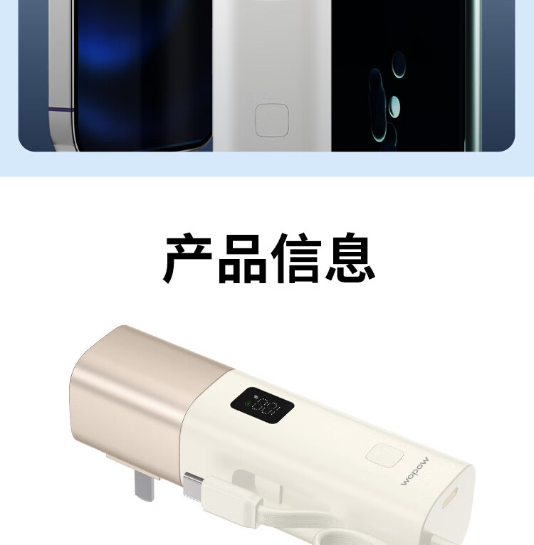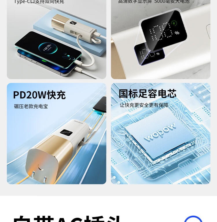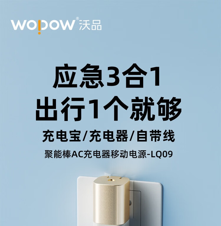 沃品/WOPOW LQ09 手机充电器 自带线充电宝5000毫安时快充带插头