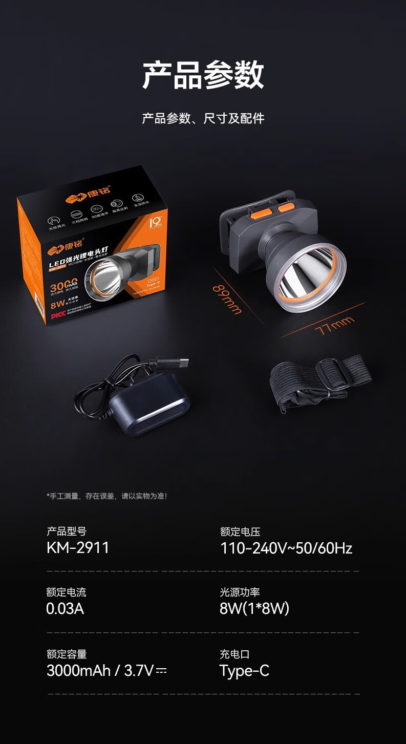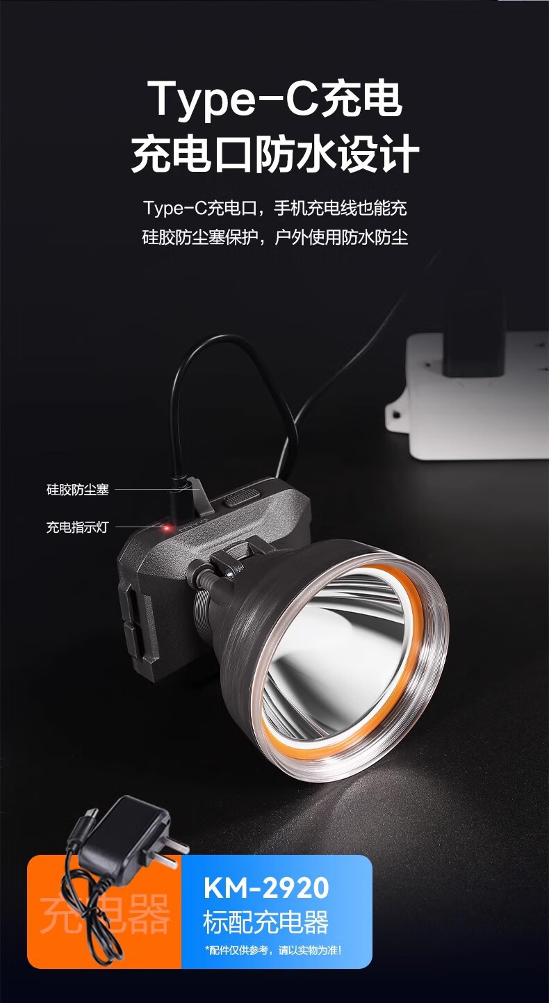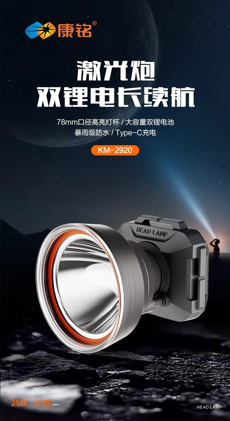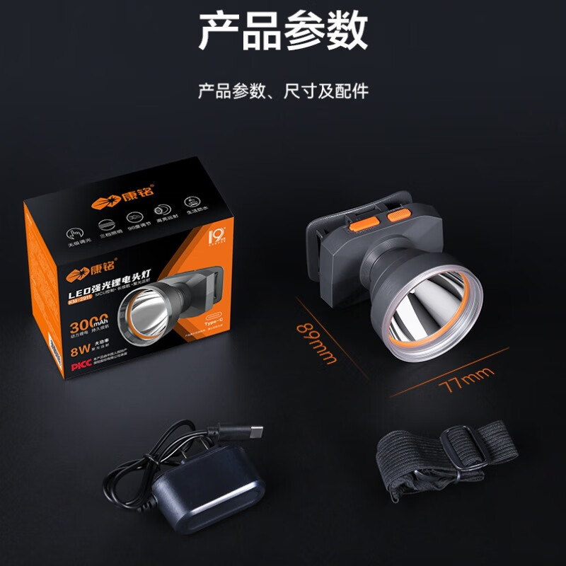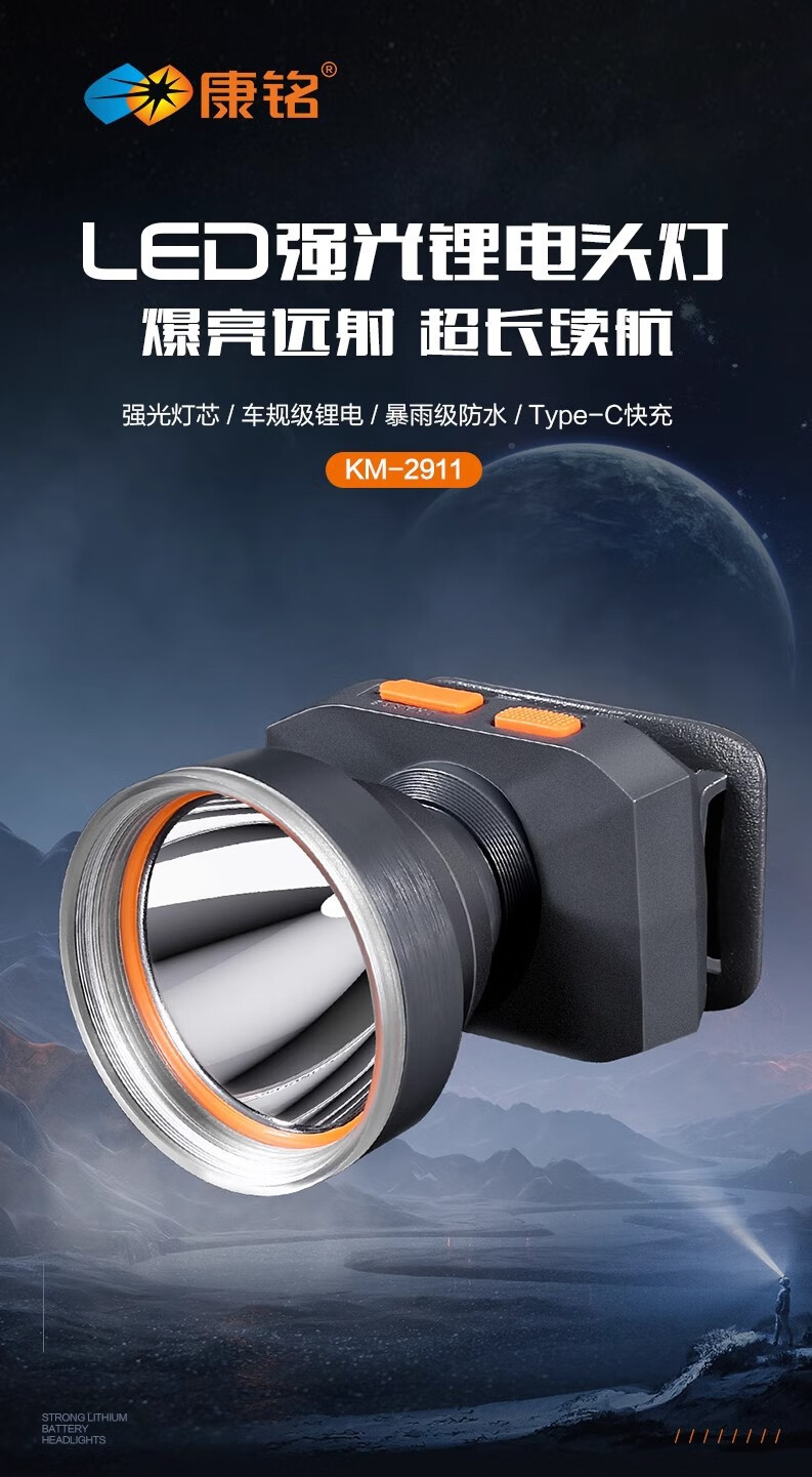 康铭/KANGMING KM-2911 应急照明灯 头戴式LED手电筒远射锂电池