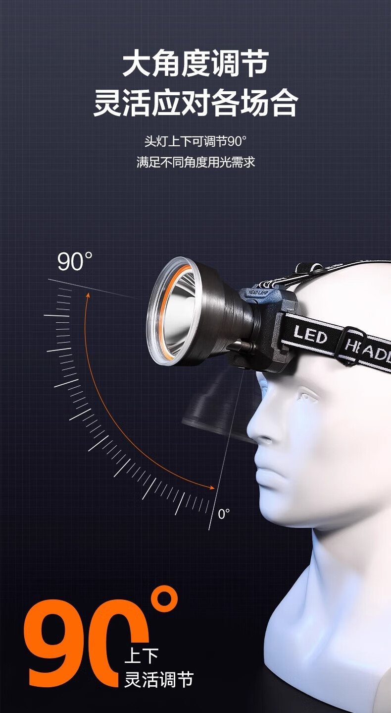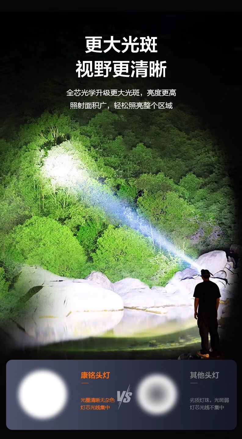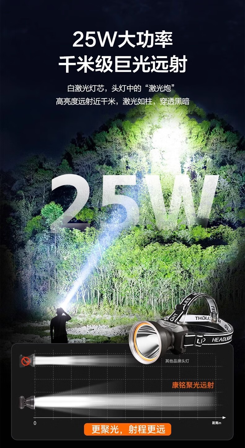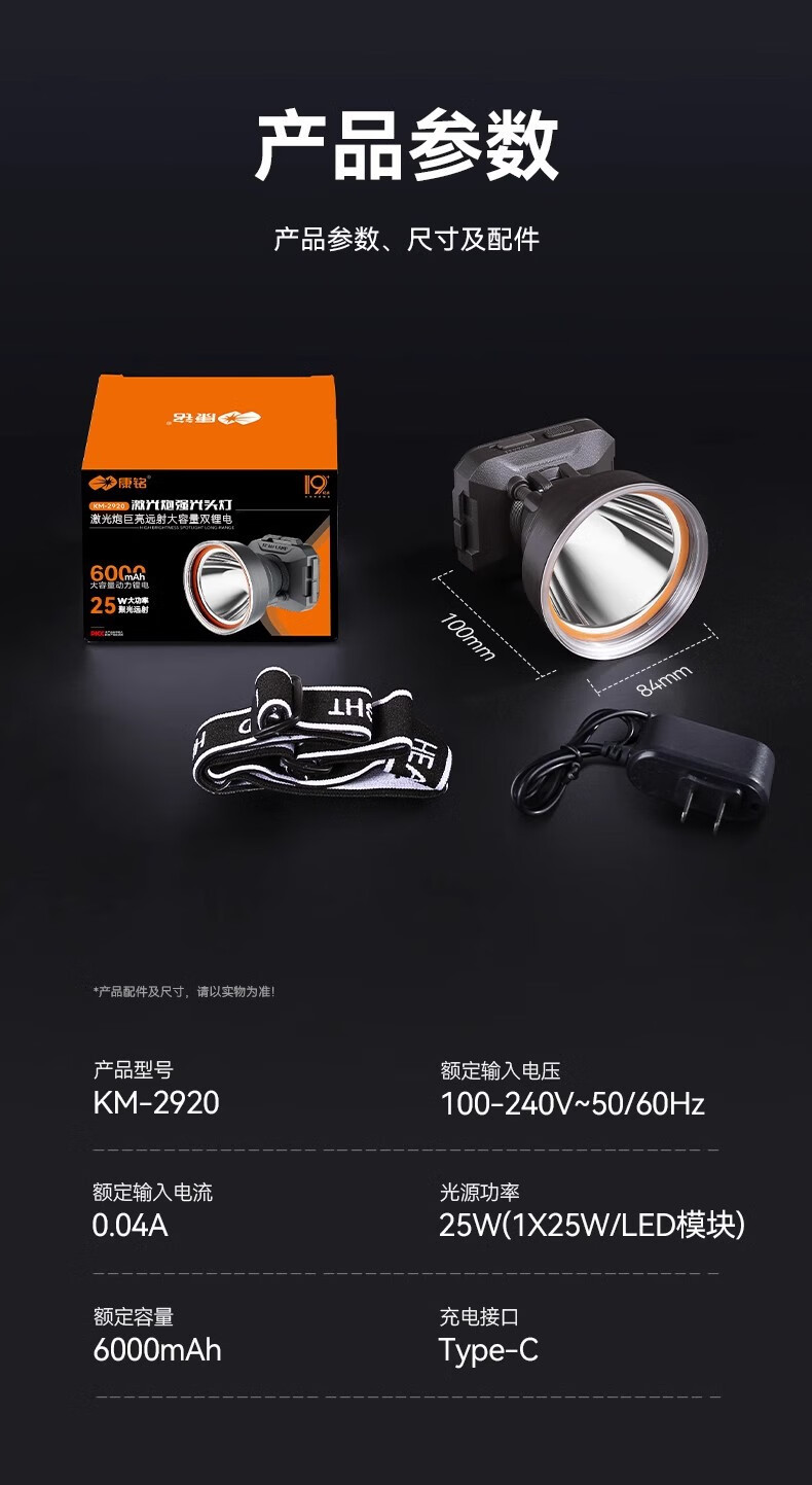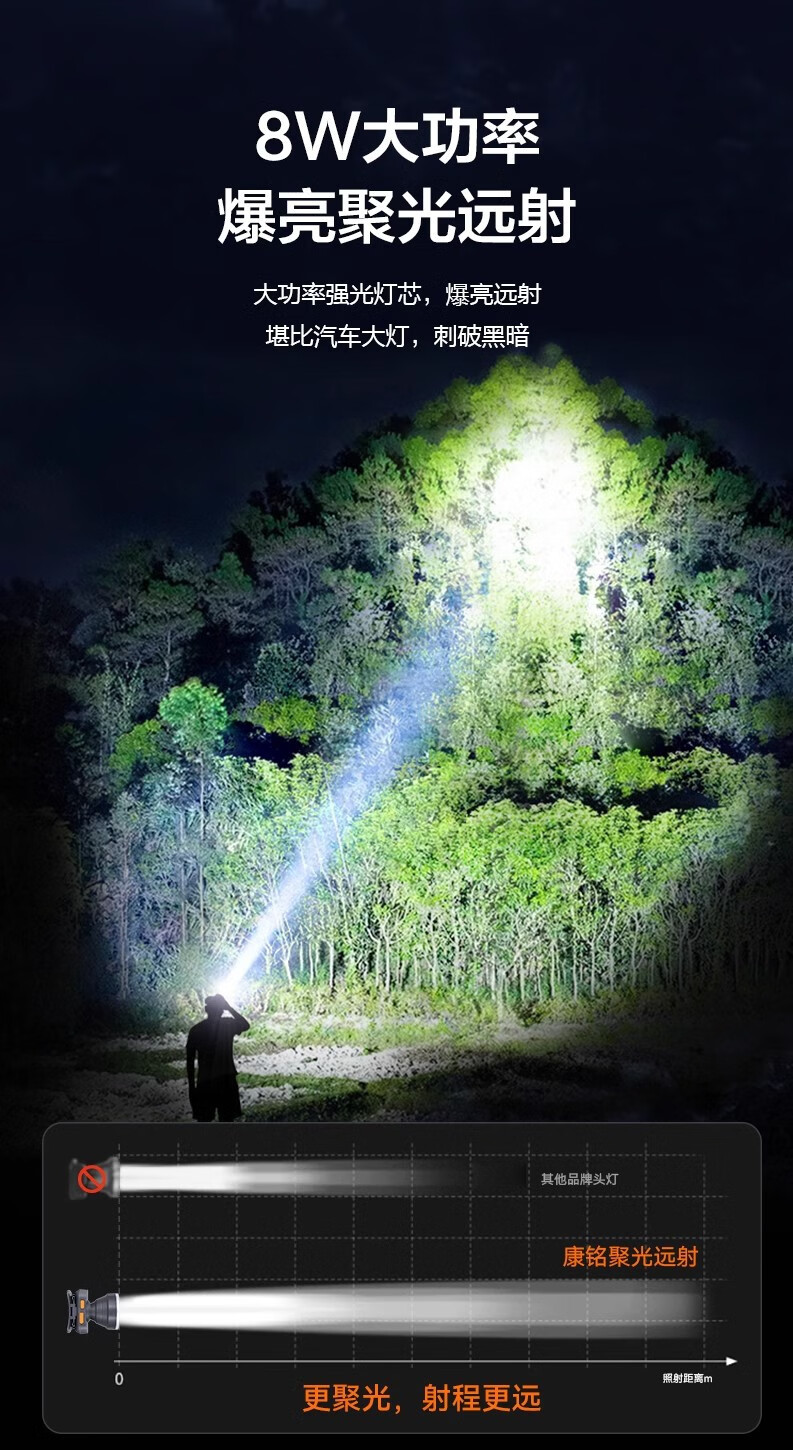 康铭/KANGMING KM-2911 应急照明灯 头戴式LED手电筒远射锂电池