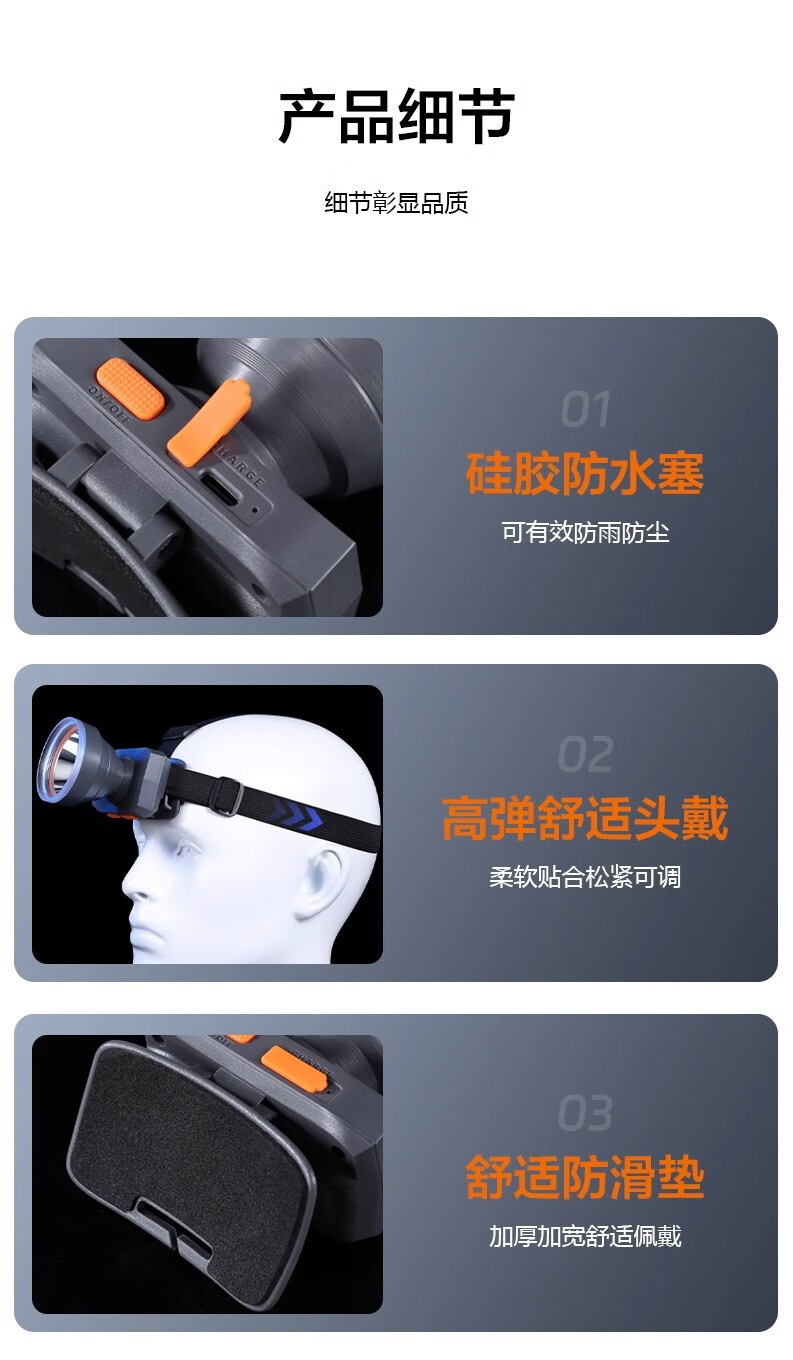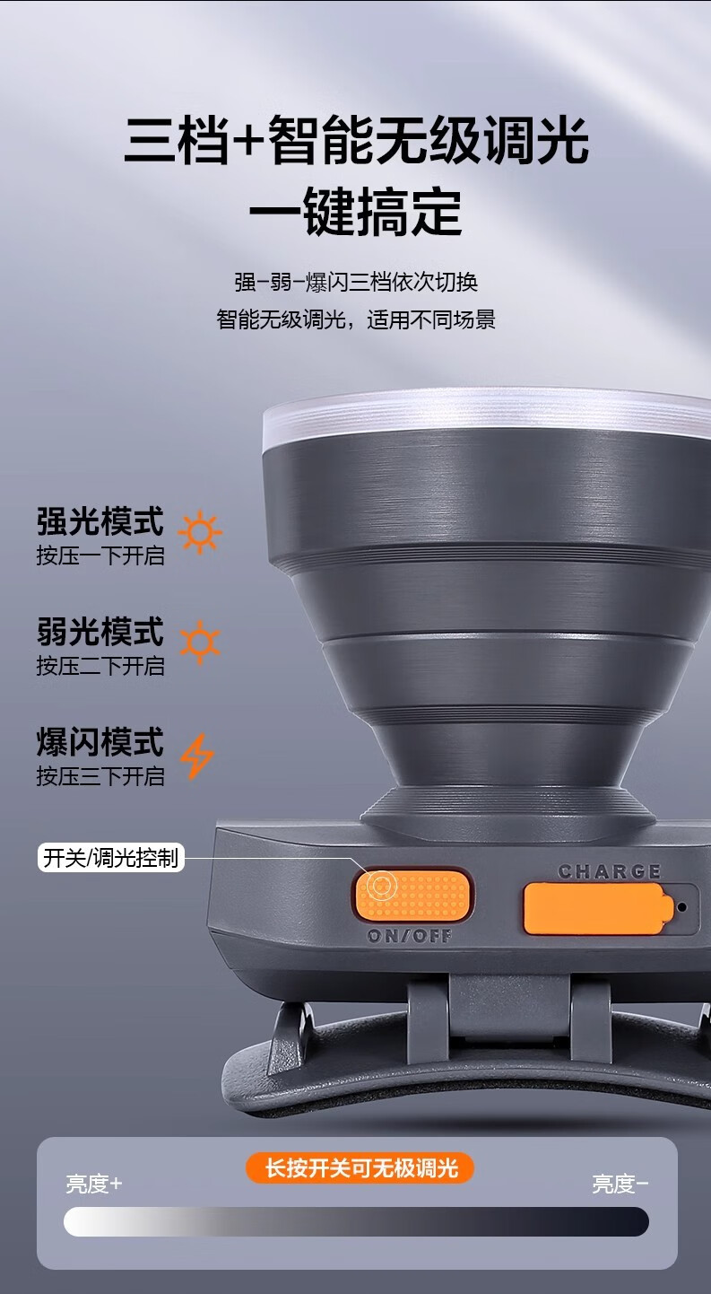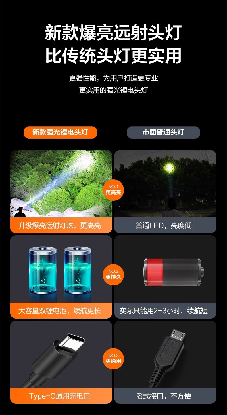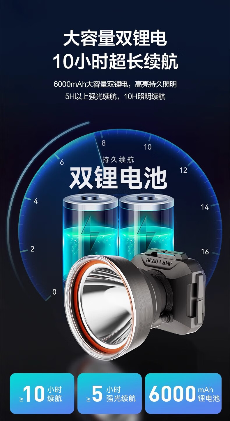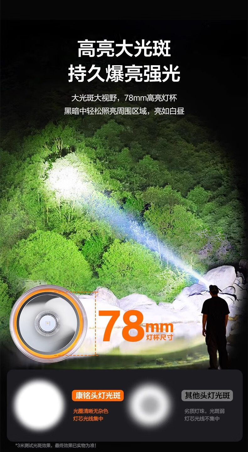 康铭/KANGMING KM-2911 应急照明灯 头戴式LED手电筒远射锂电池