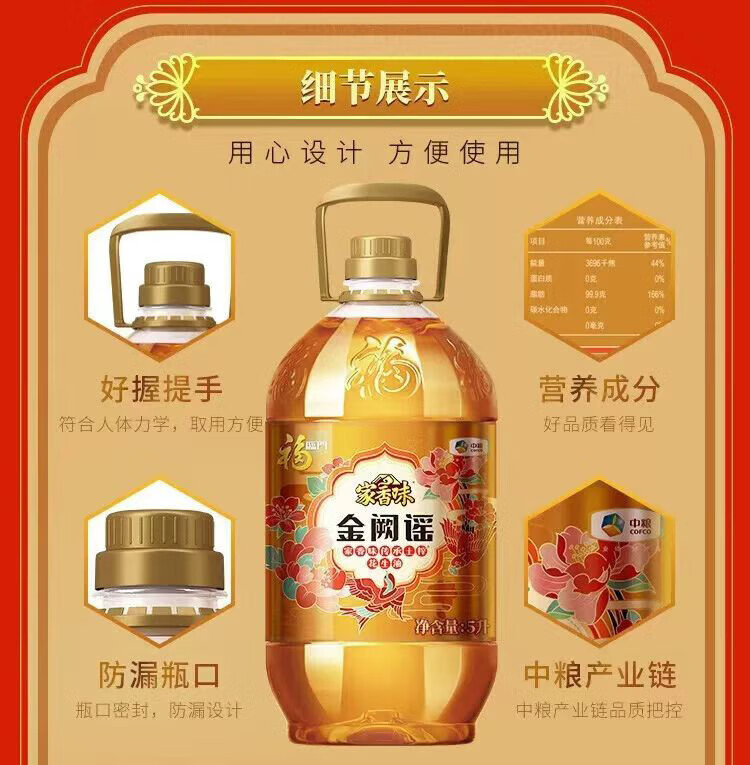 福临门 JQY5 花生油 中粮福临门家香味金阙谣土榨花生油
