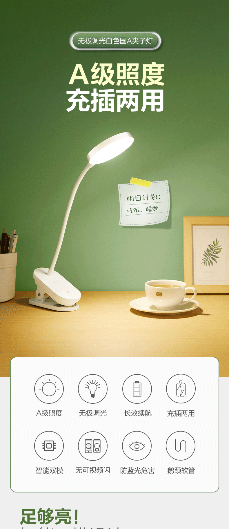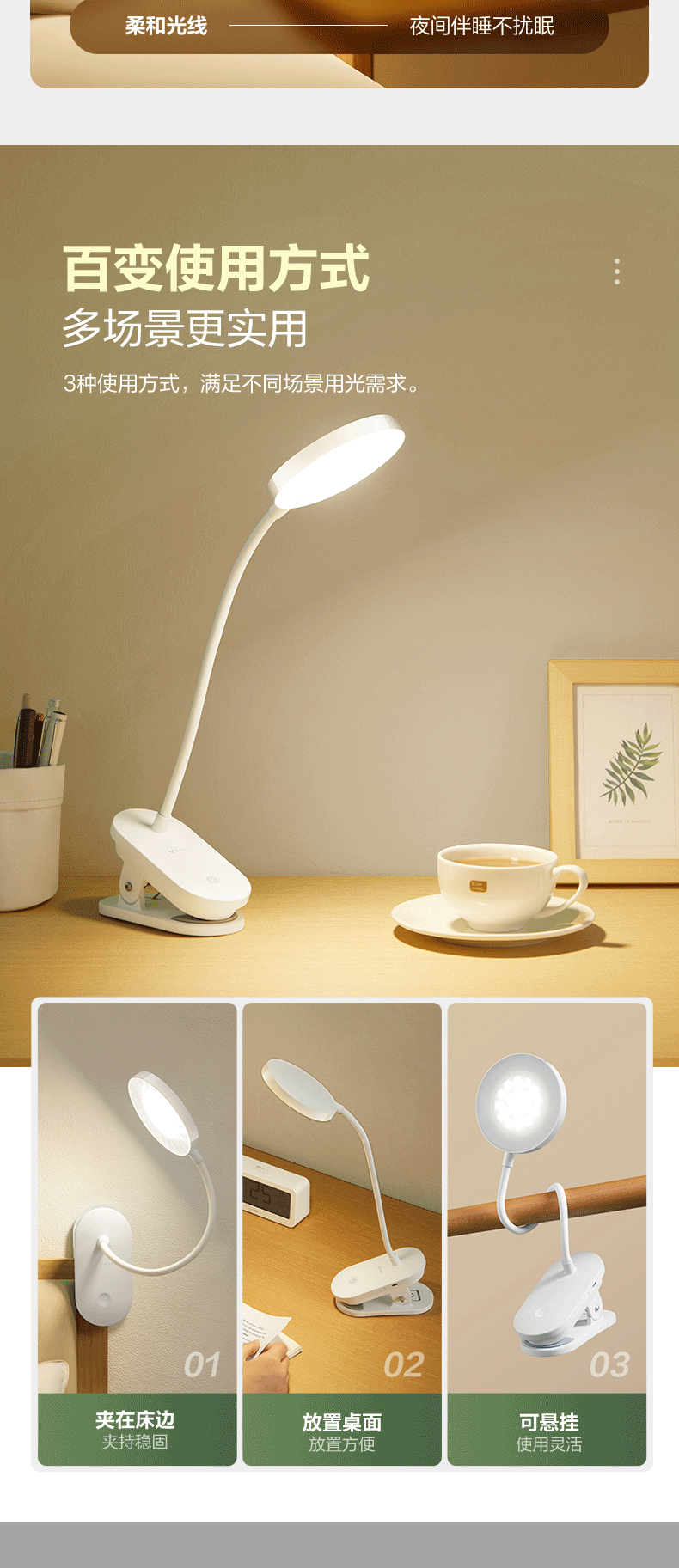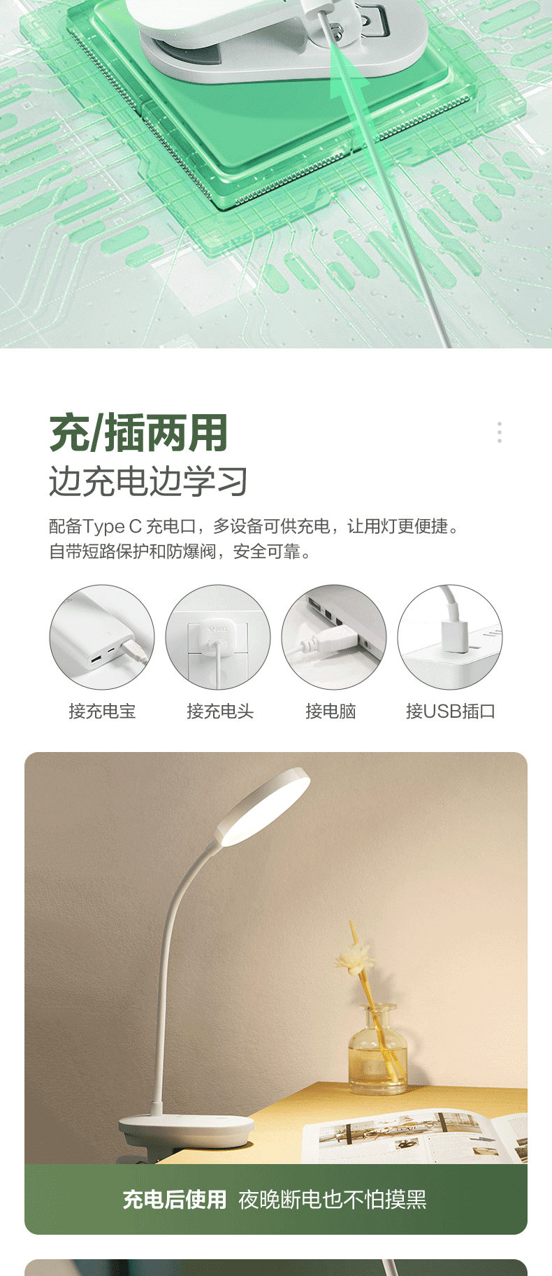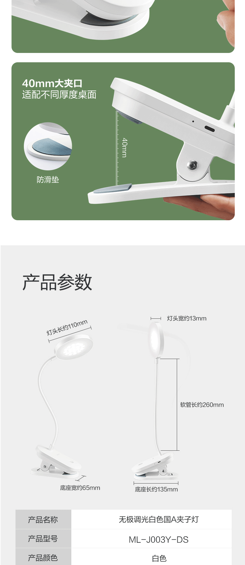 公牛/BULL ML-J003Y-DS台灯/壁灯/床头灯/落地灯 夹子灯充电护眼台灯