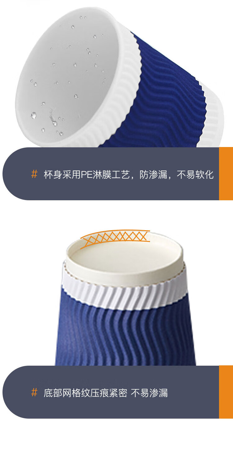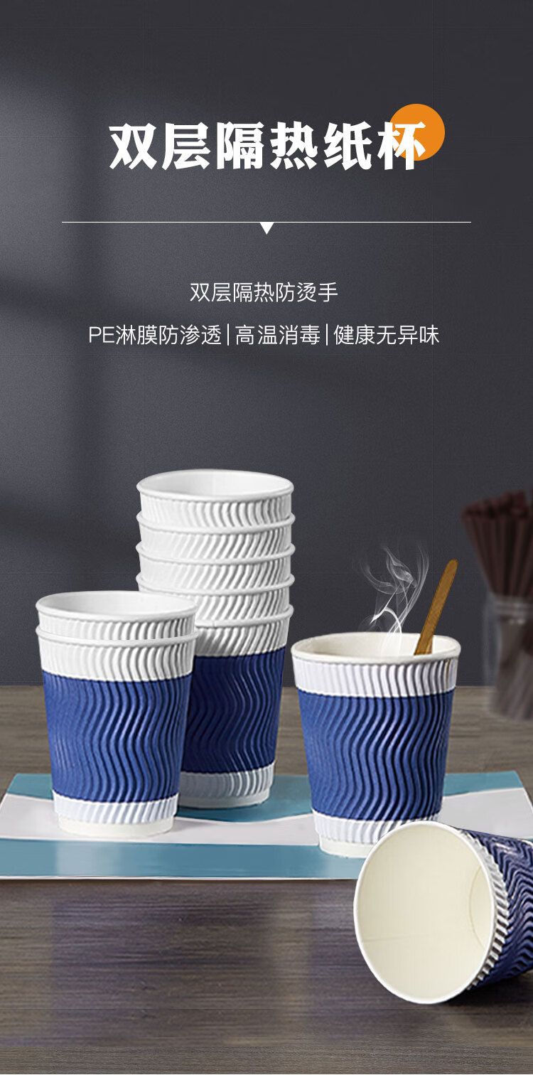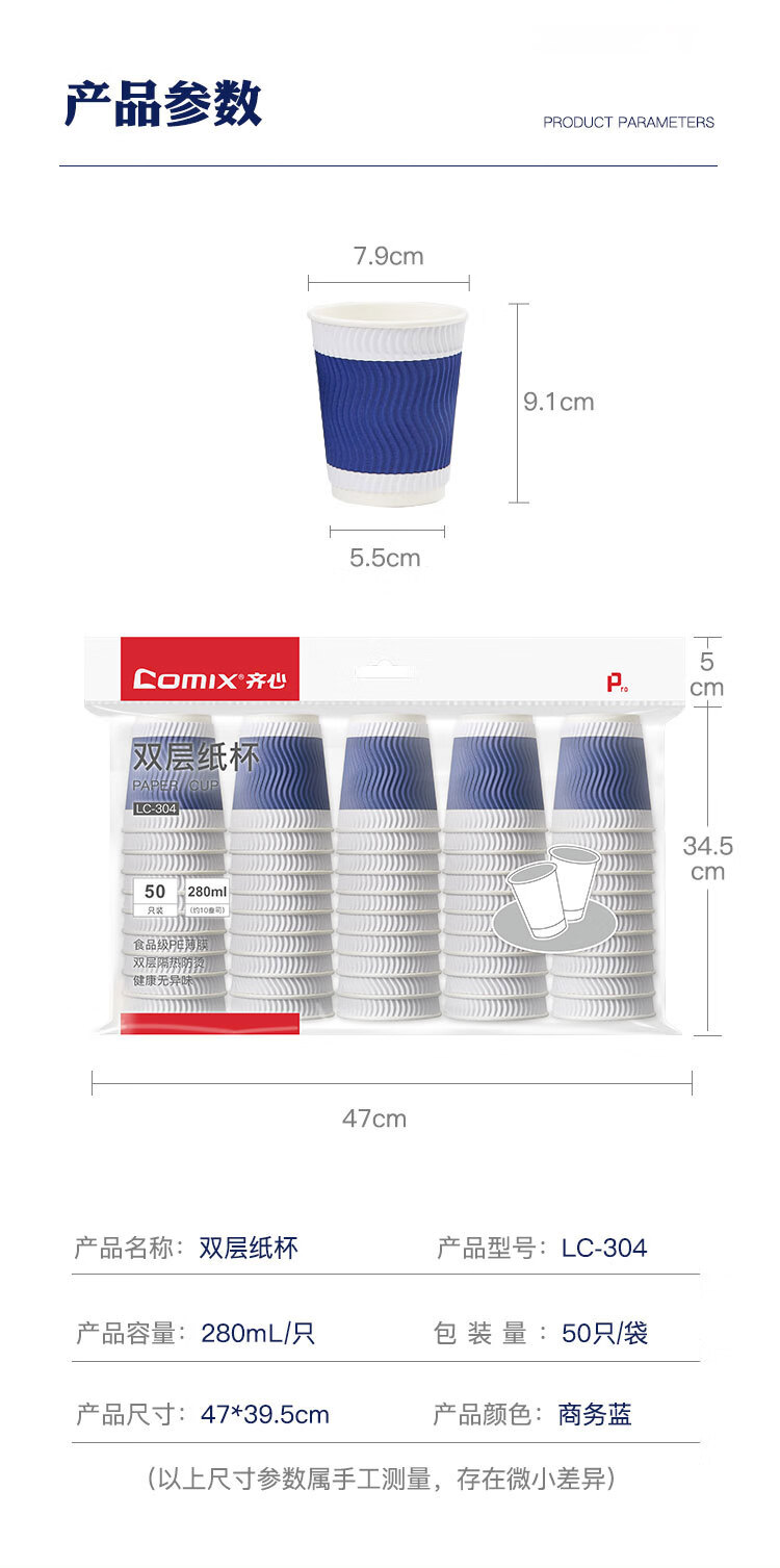 齐心/COMIX 280ml*50一次性杯子 三层加厚咖啡杯 办公用品 蓝