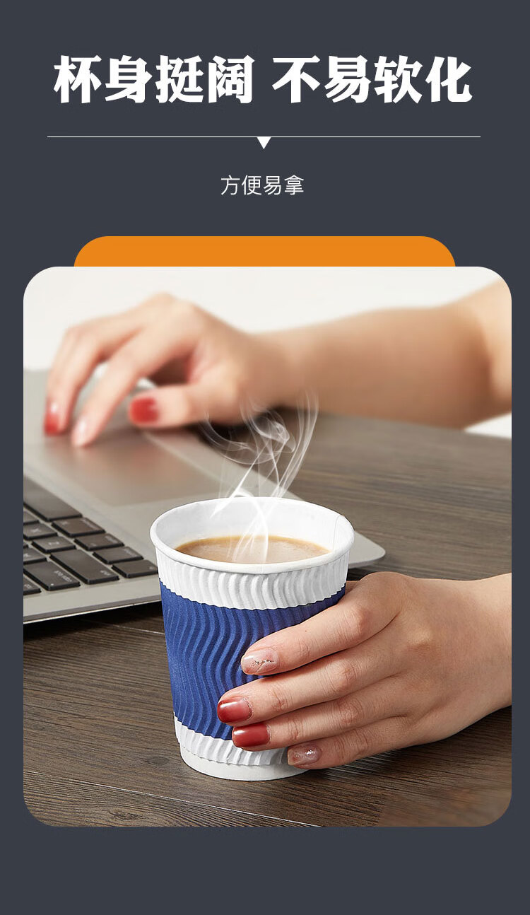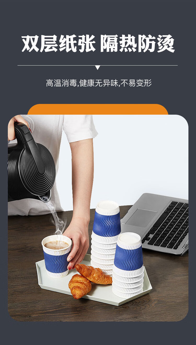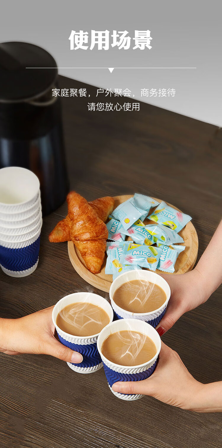 齐心/COMIX 280ml*50一次性杯子 三层加厚咖啡杯 办公用品 蓝