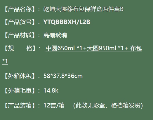 银泰/PMI YTQBBBXH/L2B碗 乾坤大挪移布包保鲜盒两件套B