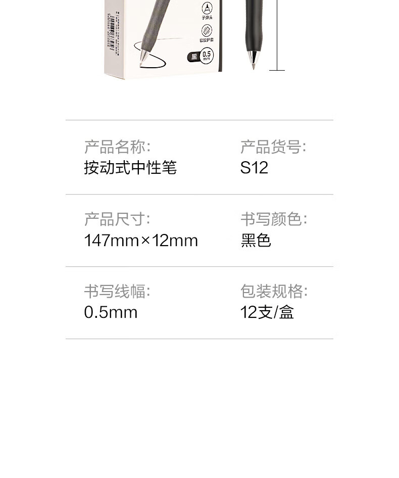 得力/deli S12 书写用笔类用具 按动中性笔签字笔 0.5mm子弹头办公学生中高档经典办公按动笔 S12 黑色12支/盒