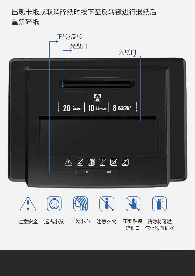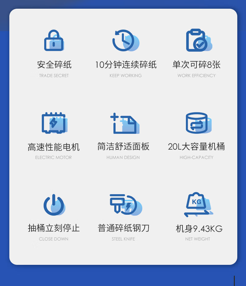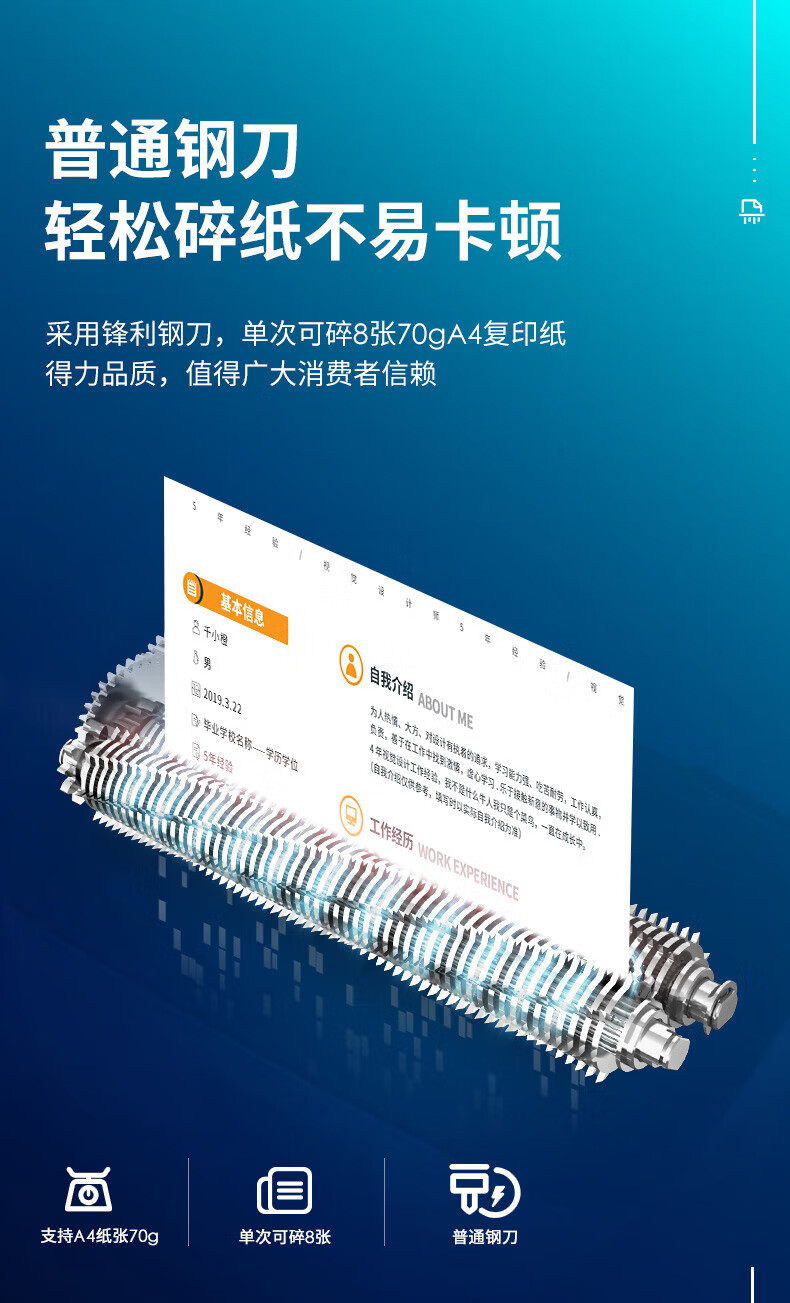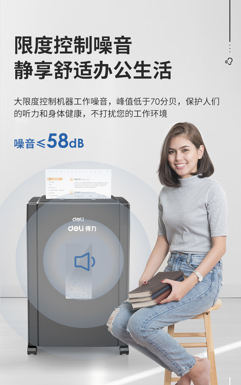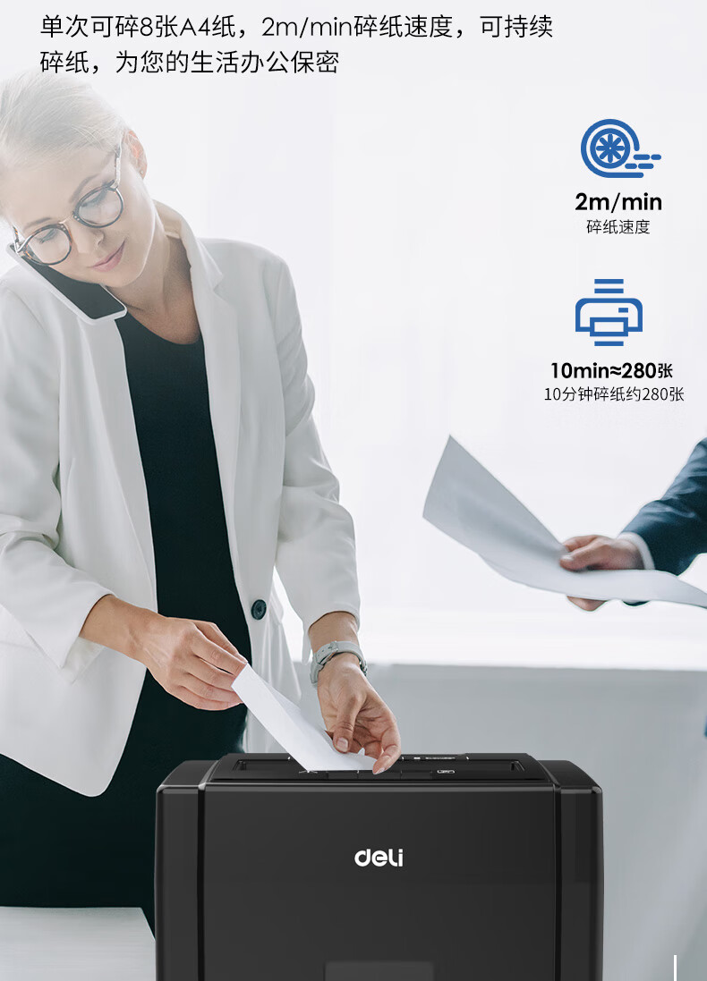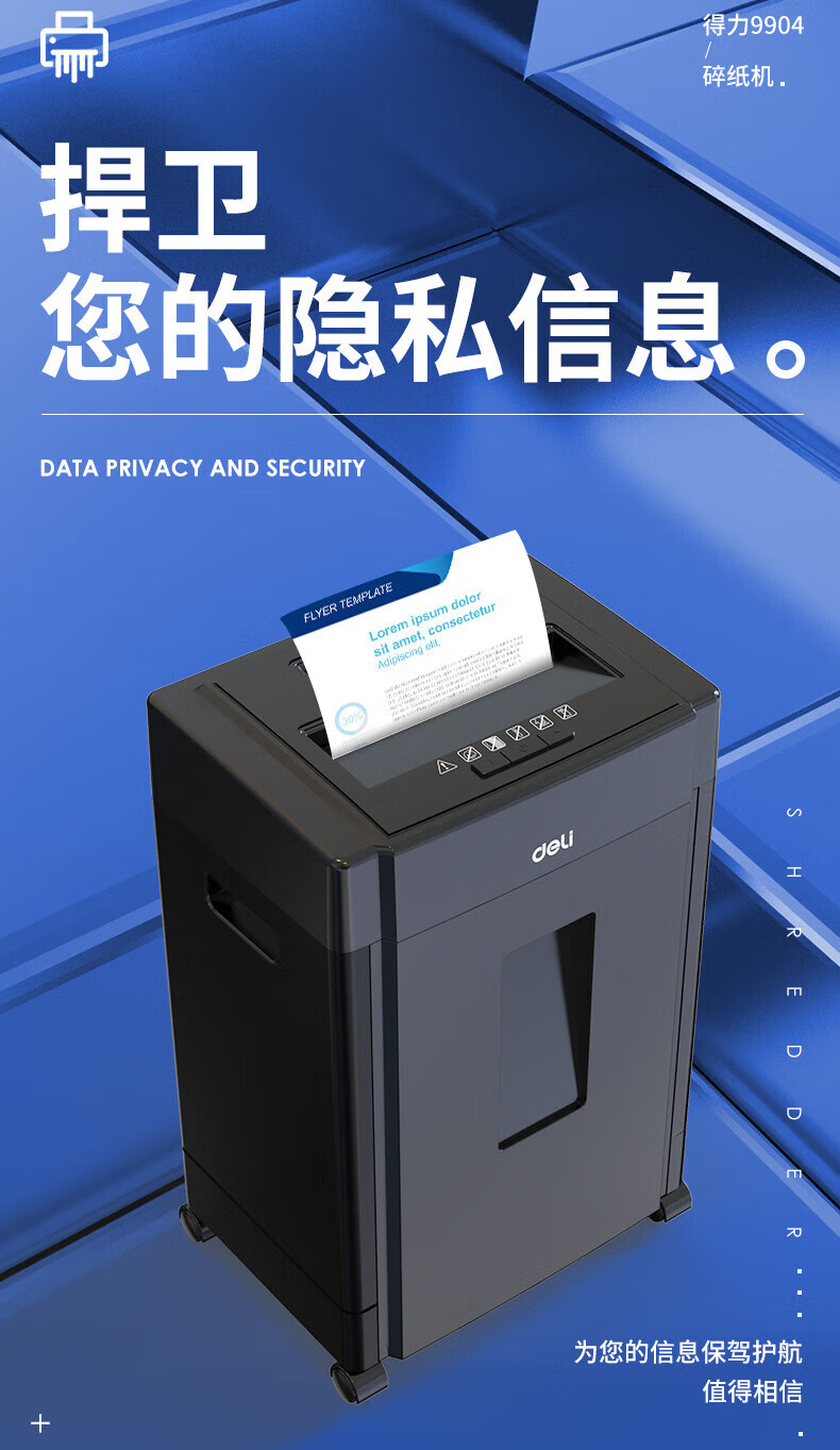 得力/deli 9904 碎纸机 5级保密 多功能办公碎纸机 8张 10分钟 20L纸筒 黑色