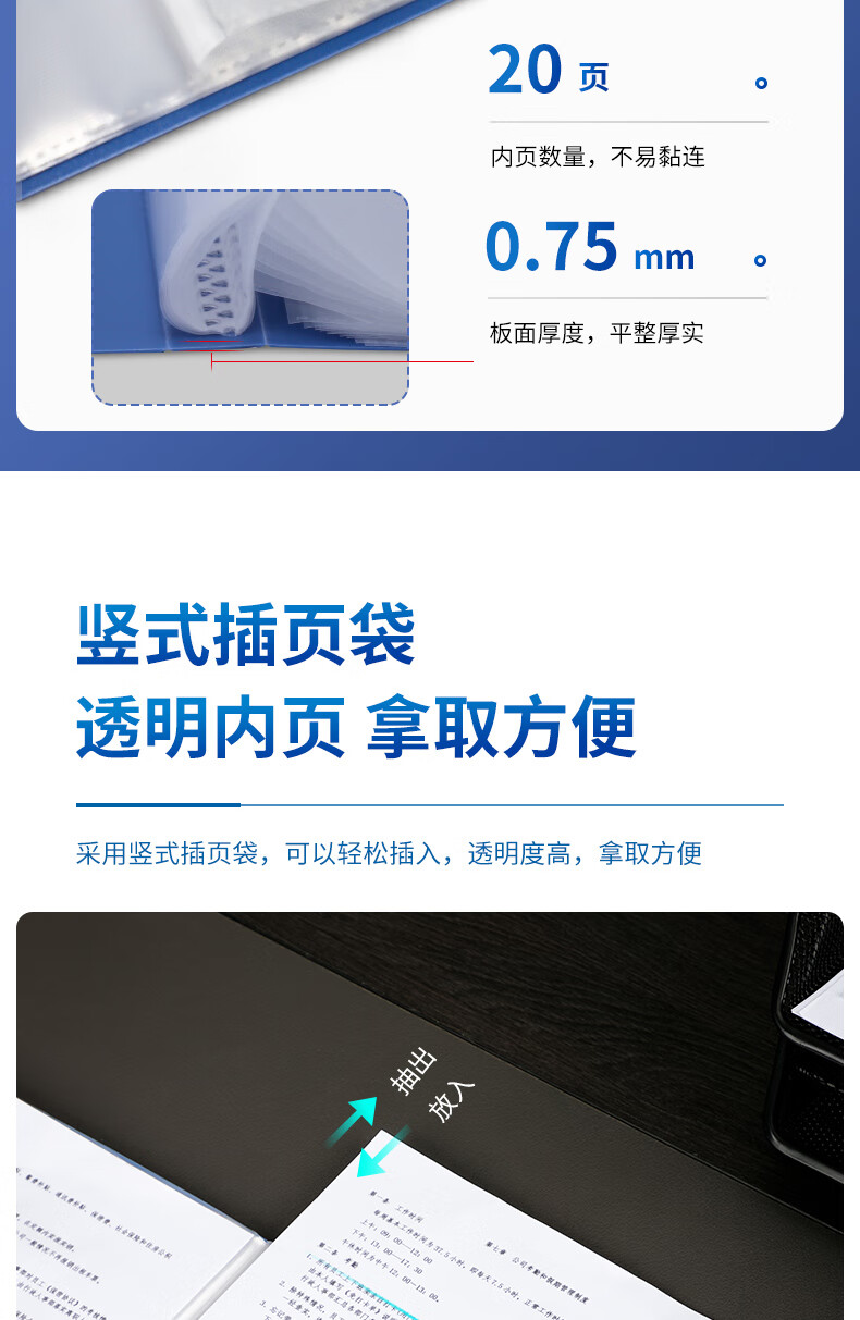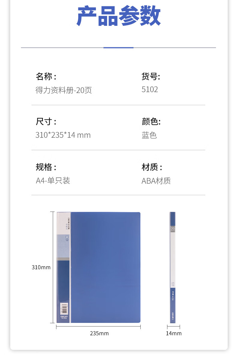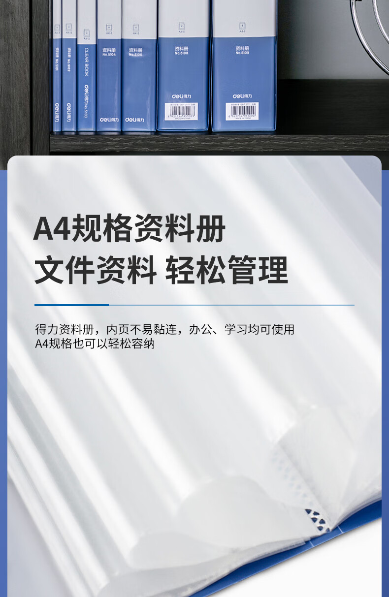 得力/deli 5102 文件夹 A4/20页资料册文件活页收纳册插袋