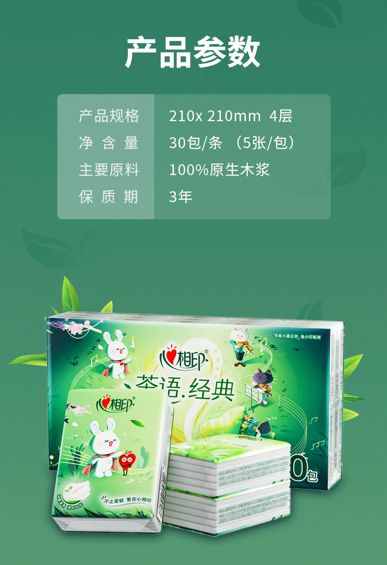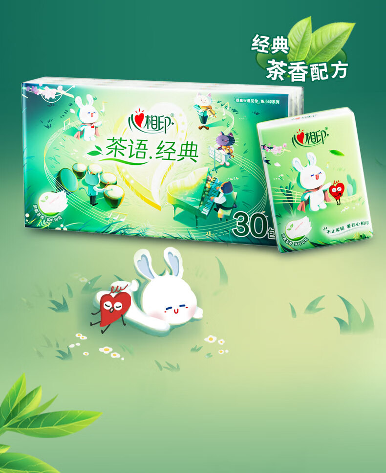 心相印/MindActUponMind CY1730 软包抽取式面纸 心相印茶语经典30包装四层印花手帕纸*1条