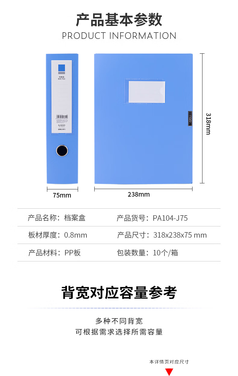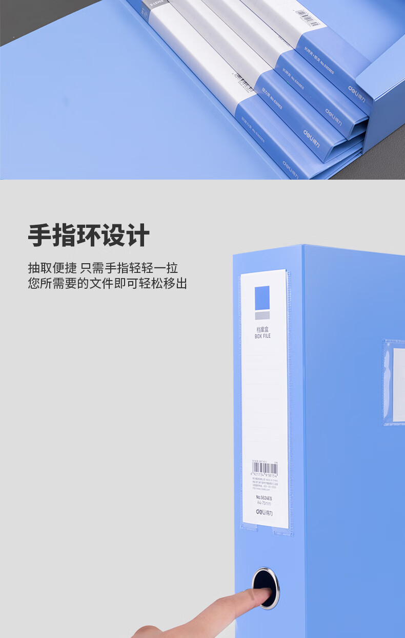 得力/deli PA104-J75 文件夹 10只75mmA4塑料PP粘扣文件盒档案盒